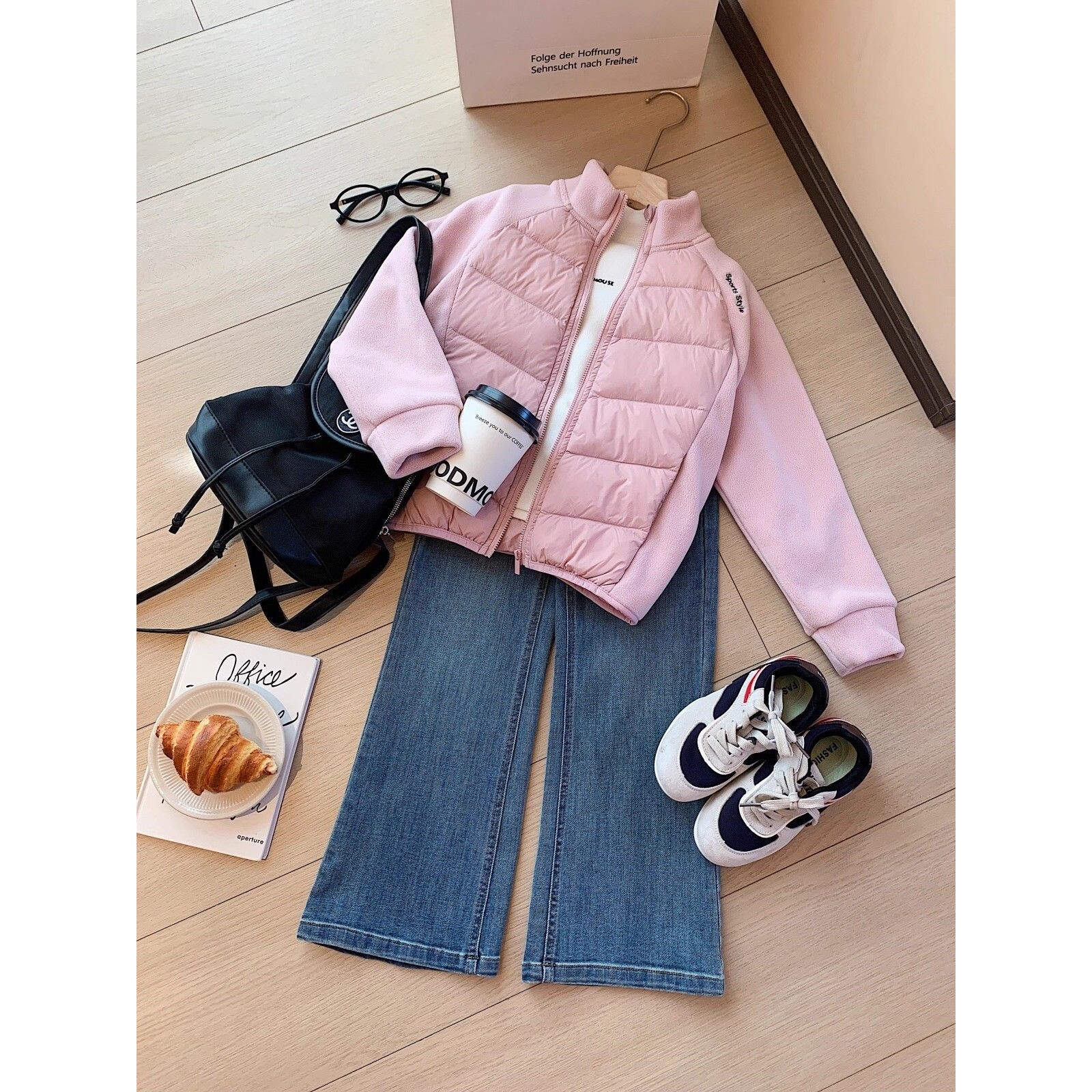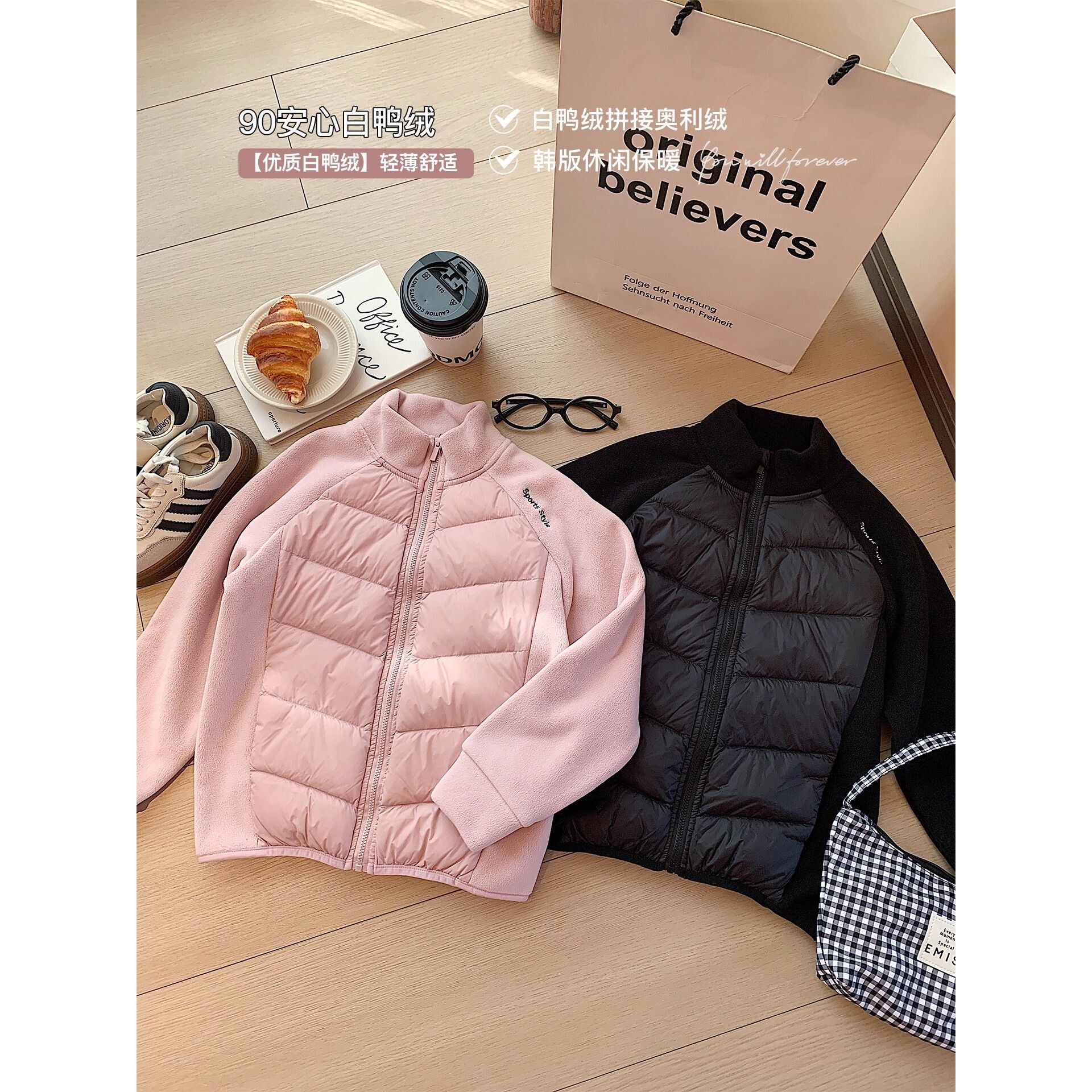 📚 时尚百搭90安心白鸭绒女童羽绒服冬季新款拼接毛呢轻薄羽绒外套