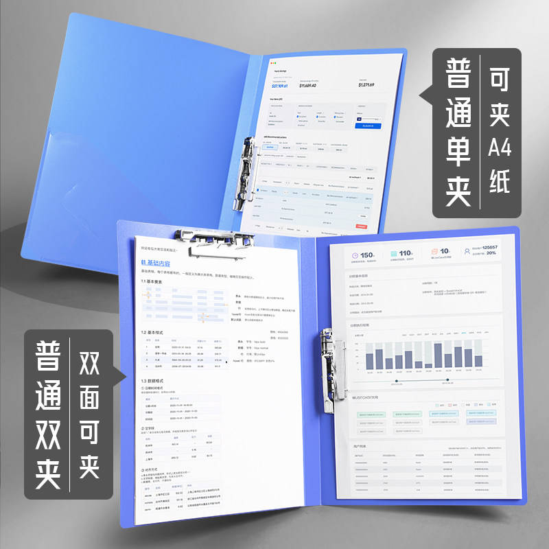 📚 得力a4文件夹办公用品文具单双强力夹活页夹加厚书夹固定纸张分类整理档案夹子双夹板文件板夹资料票据收纳册