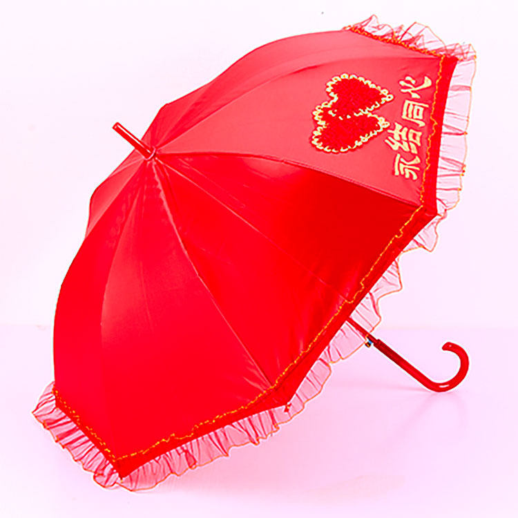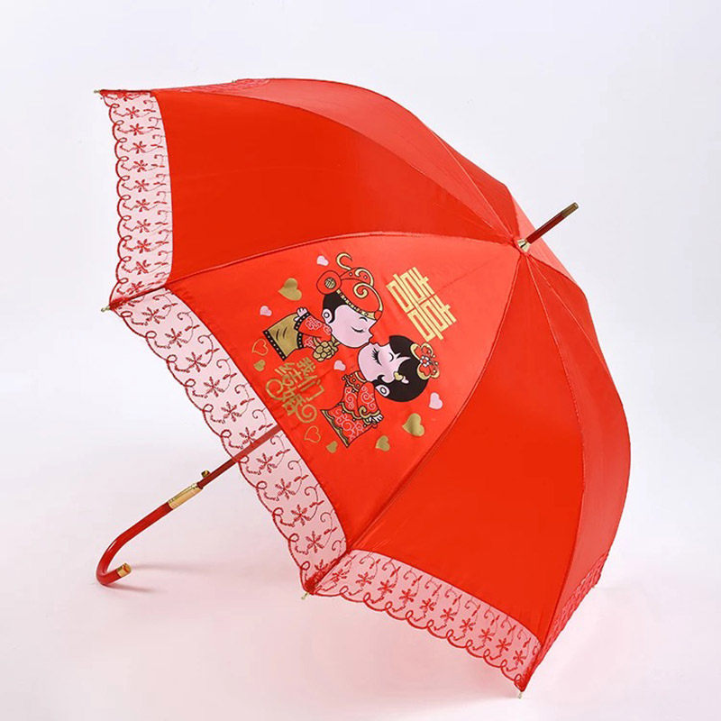 📚 婚喜庆结婚用红雨伞新娘出嫁红色蕾丝边半自动长柄女方红伞新郎伞
