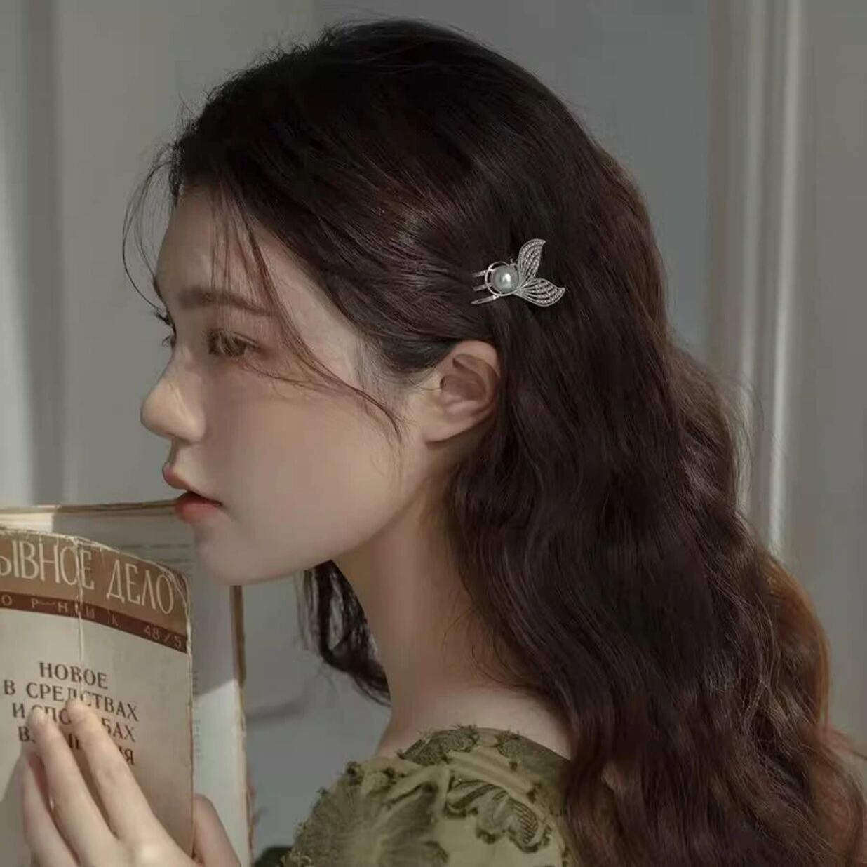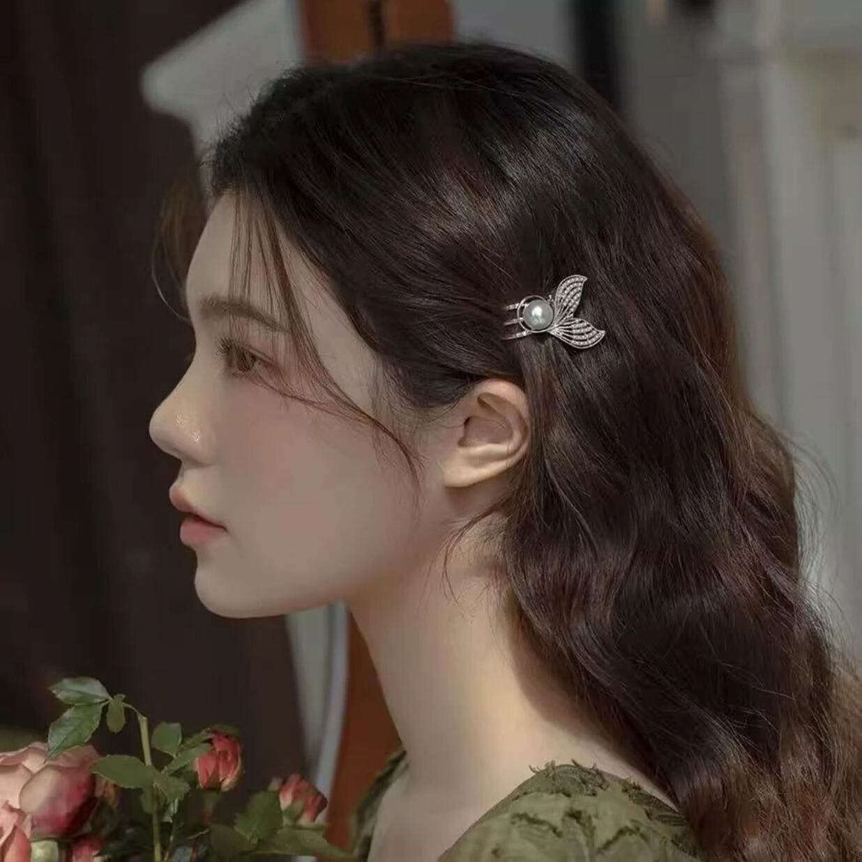 📚 仙气仿珍珠蝴蝶耳边发夹侧边小夹子气质发卡刘海夹一字夹碎发发饰