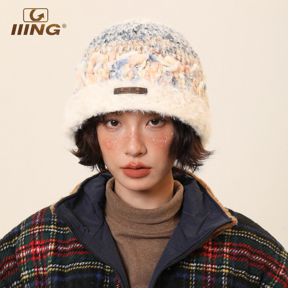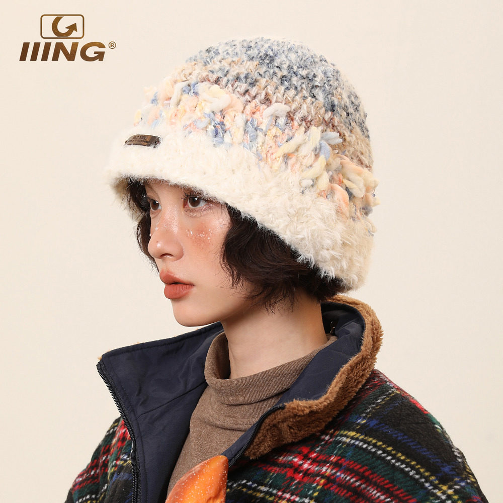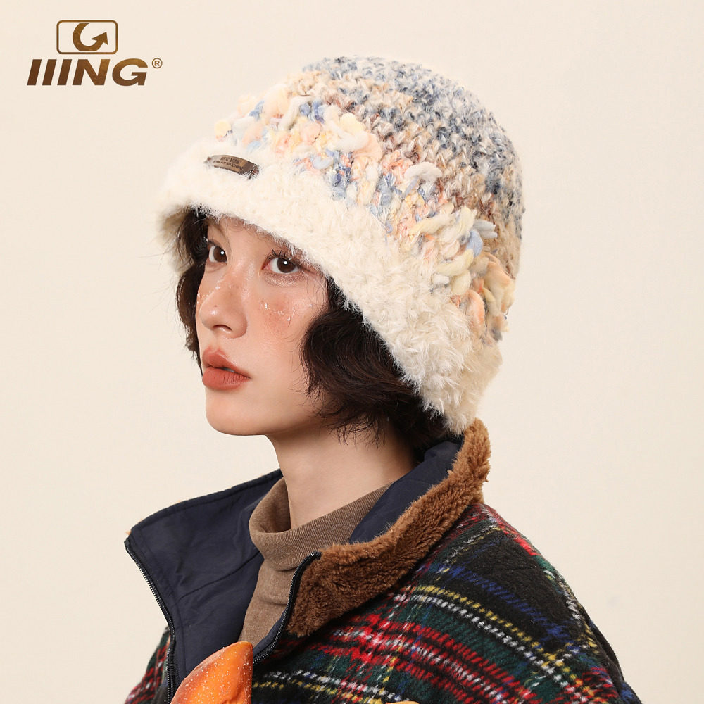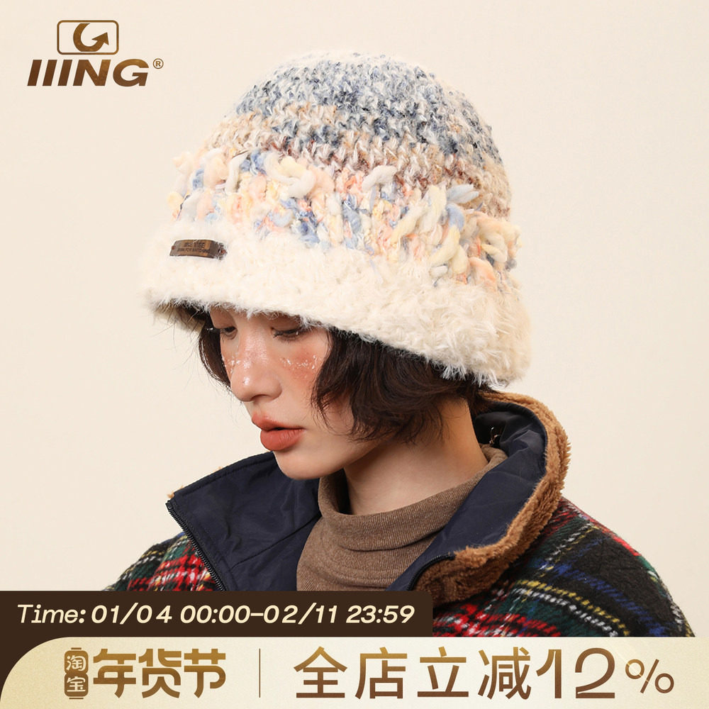 📚 IIING帽控 手钩杂花含羊毛针织渔夫帽子女秋冬保暖显脸小水桶盆帽