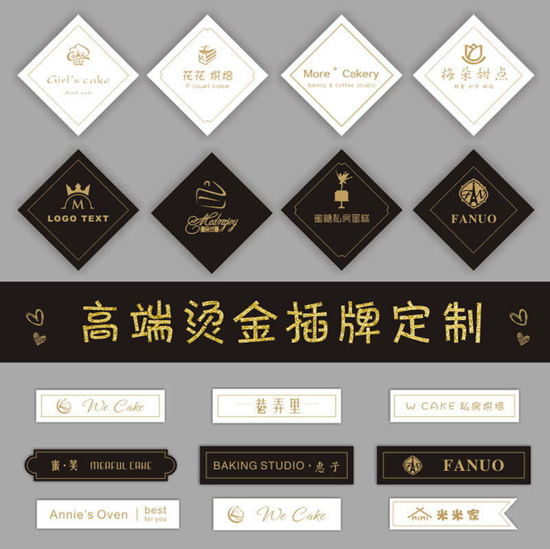 📚 生日快乐烘焙蛋糕装饰logo插牌定制甜品插卡插排订制设计印刷金色