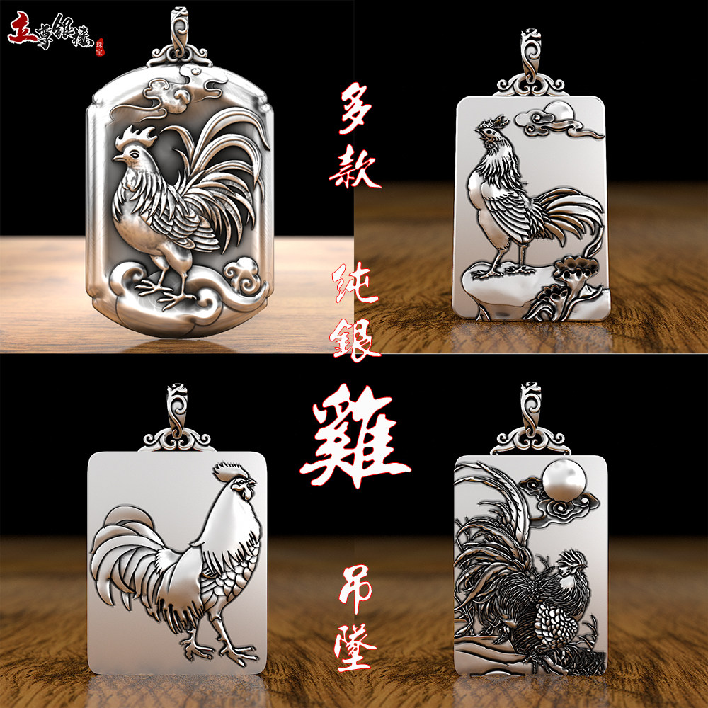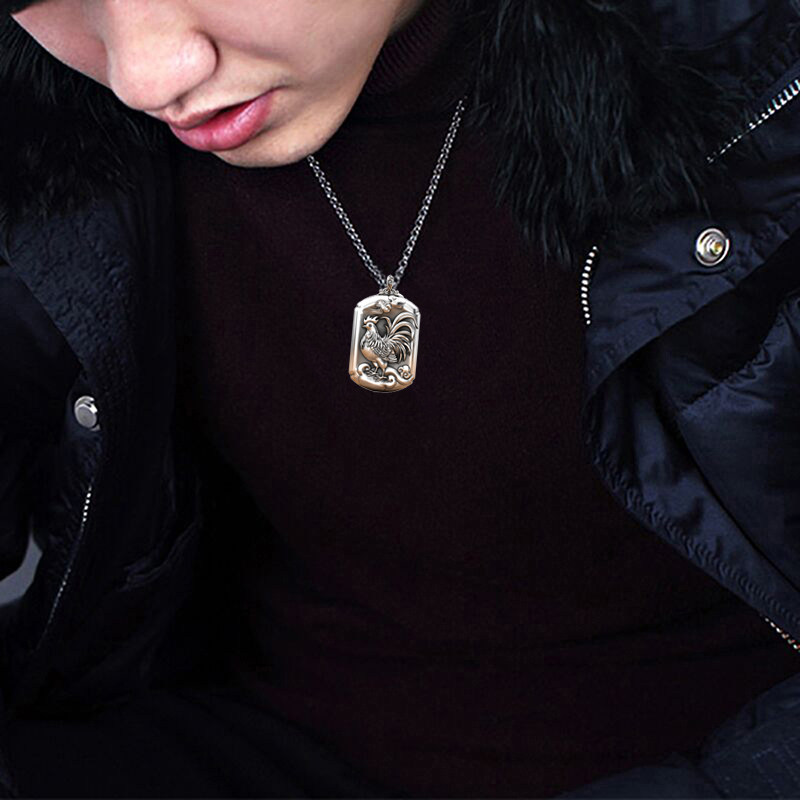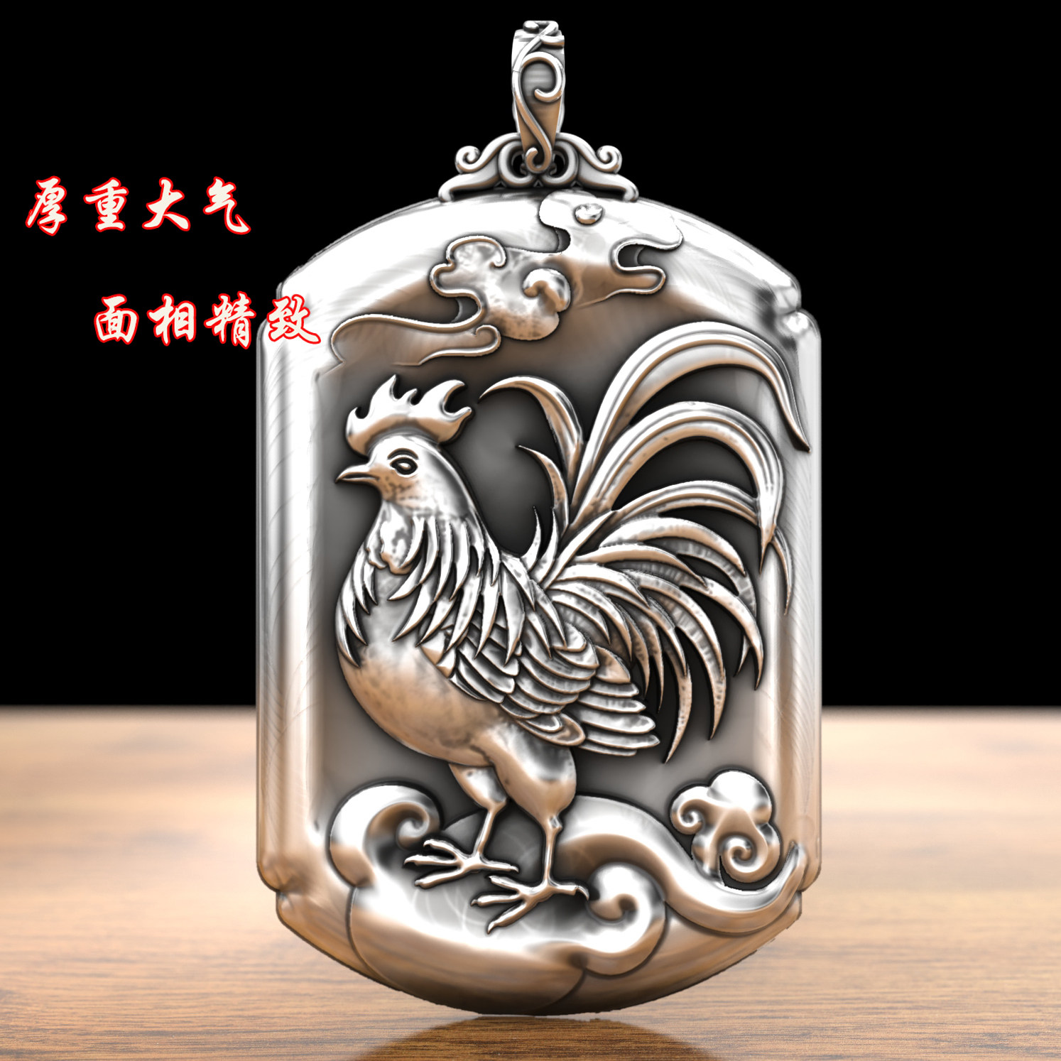 📚 生肖鸡实心纯银吊坠男女项链复古泰银足银项链霸气酉公鸡银牌车挂