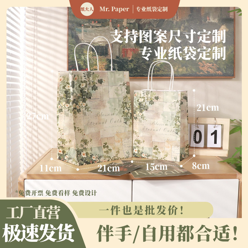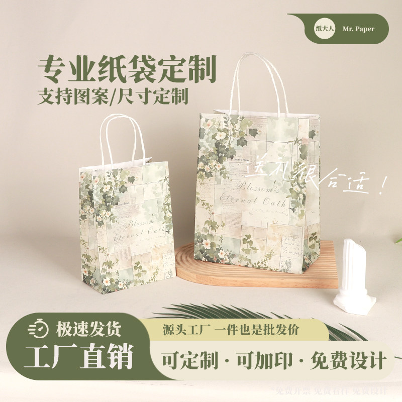 📚 牛皮纸袋礼品袋批发烘焙打包袋点心手提甜点袋子商用可印logo定制