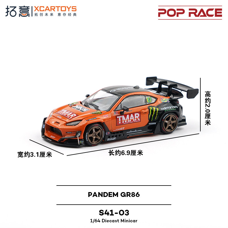 📚 拓意POPRACE合金1/64丰田超跑收藏摆件PANDEM GR86-魔爪赛车模型