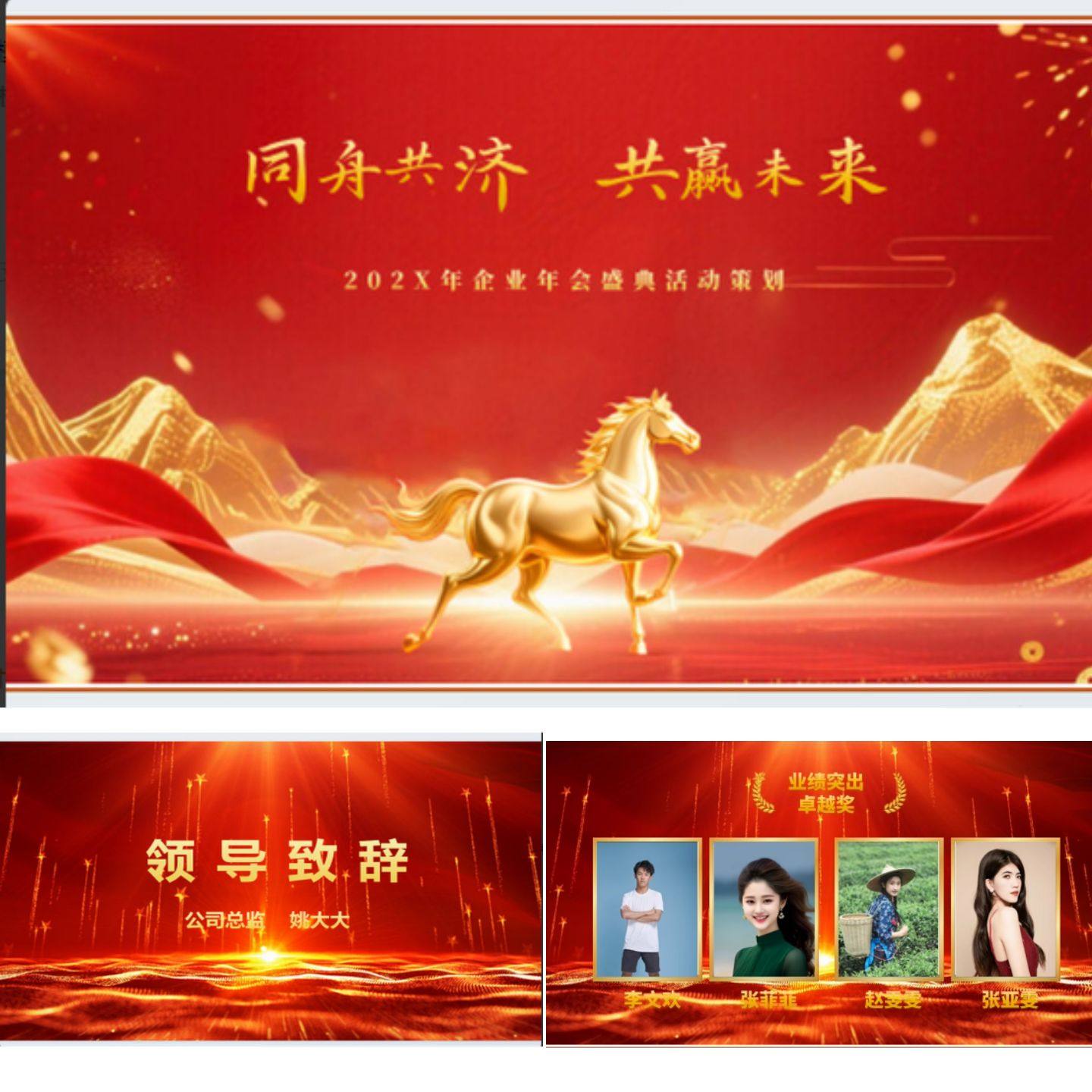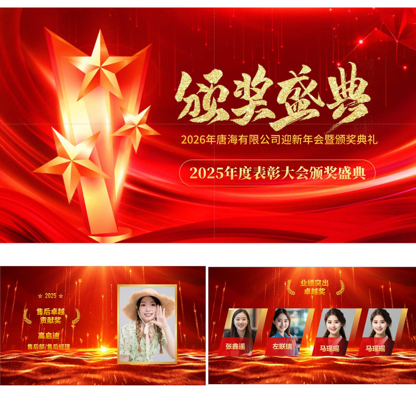 📚 年会颁奖典礼红色PPT模板动态教师销售晚会人物表彰大会大屏编辑