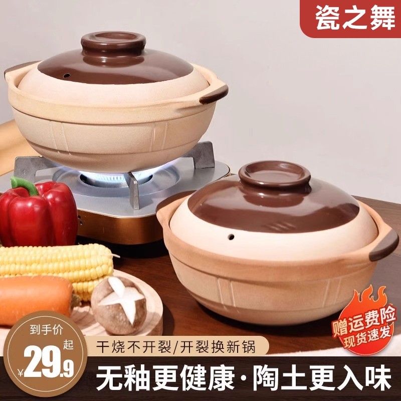 📚 陶土砂锅炖锅家用燃气干烧不裂煲仔饭专用老式沙锅煲汤瓦煲锅