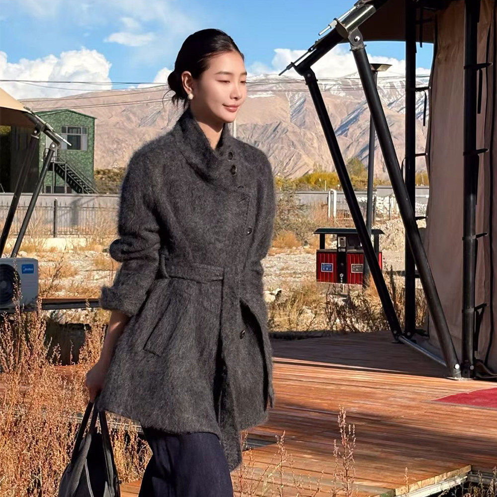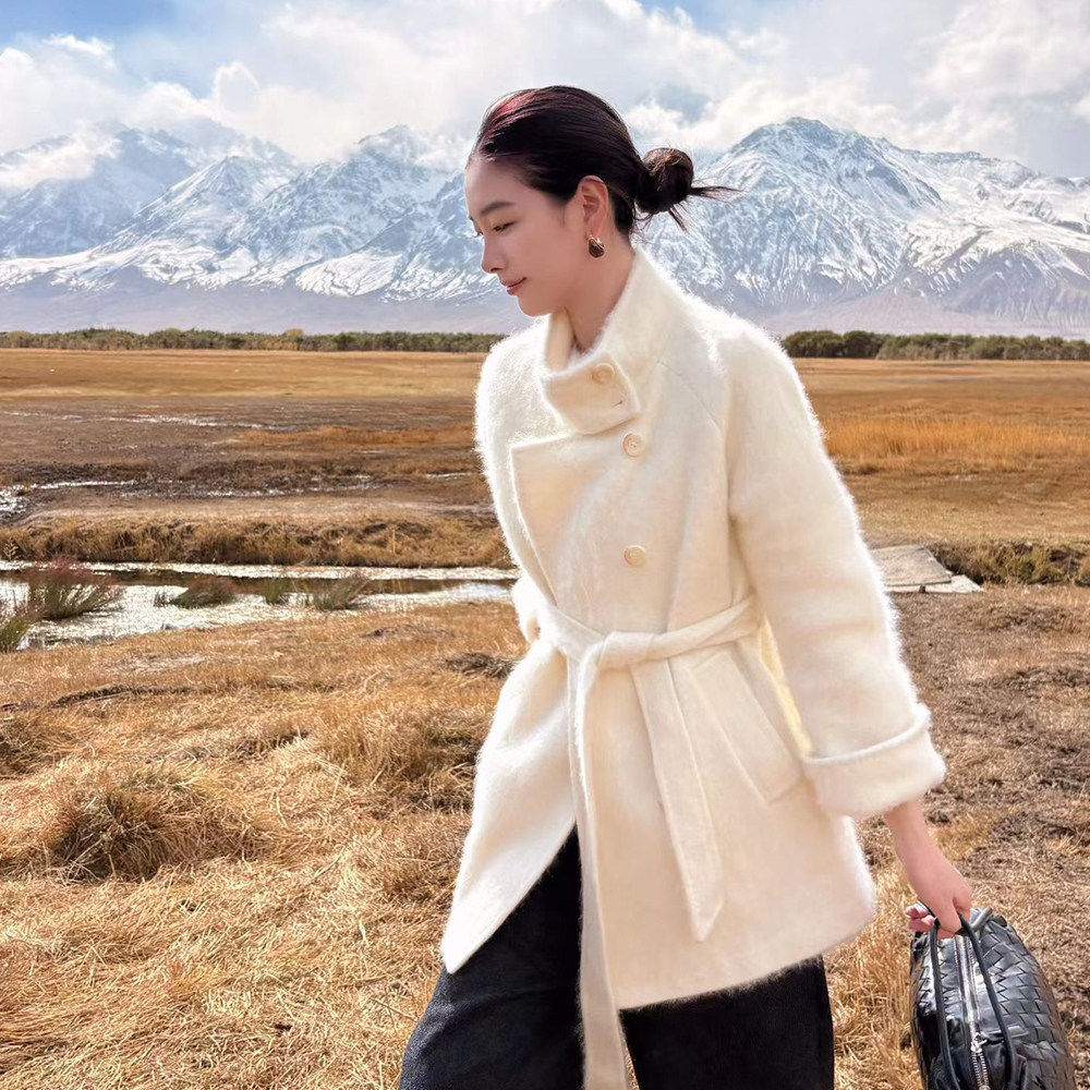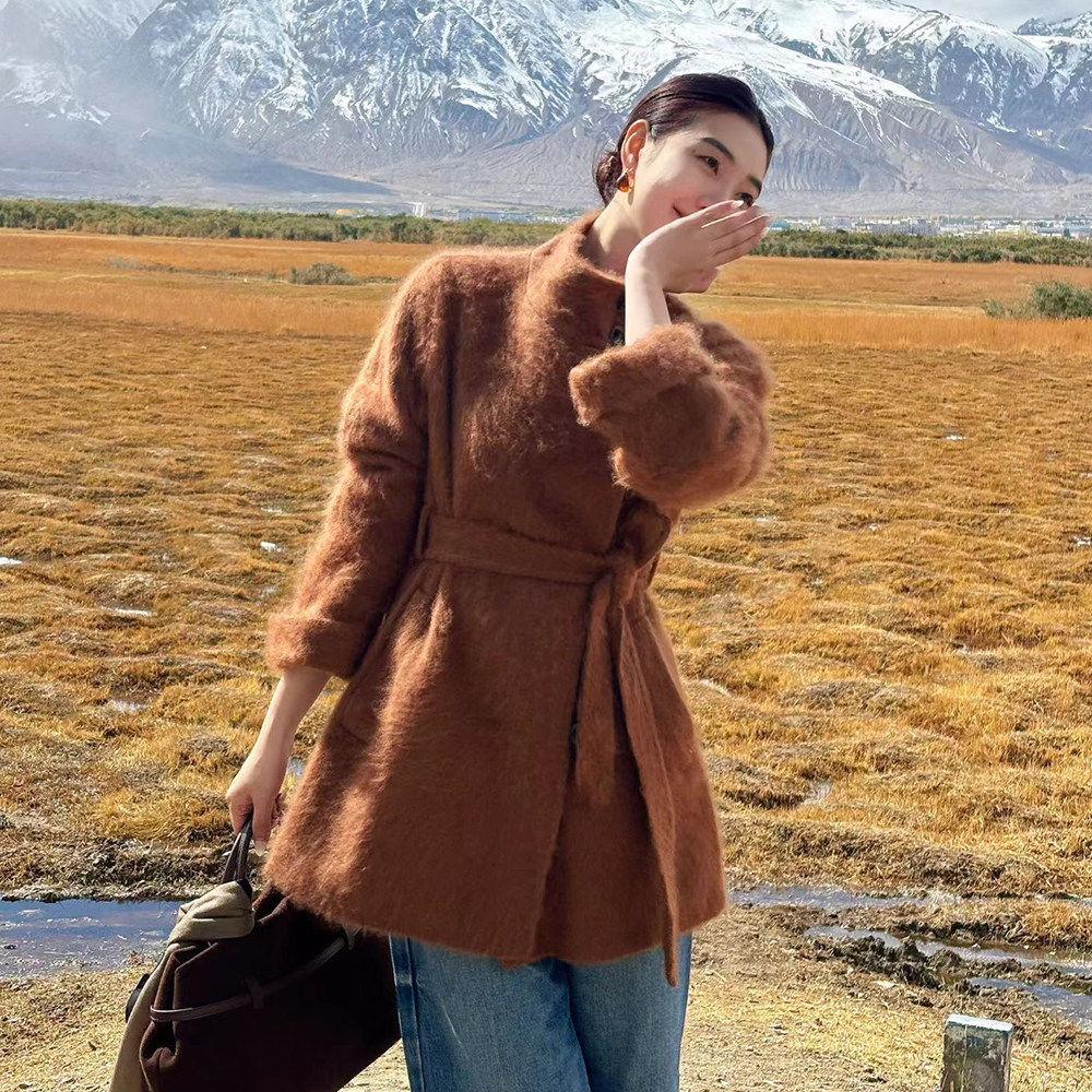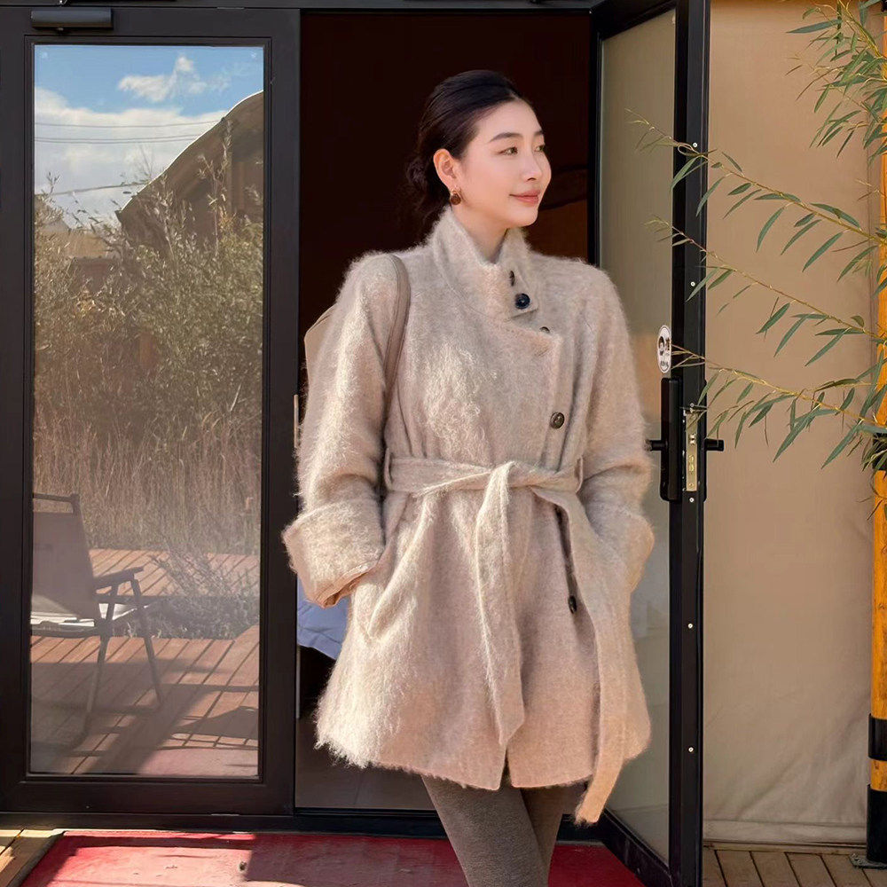📚 山羊绒拉绒大衣女高端绵羊毛立领拉毛皮草毛呢大衣冬女高级感厚