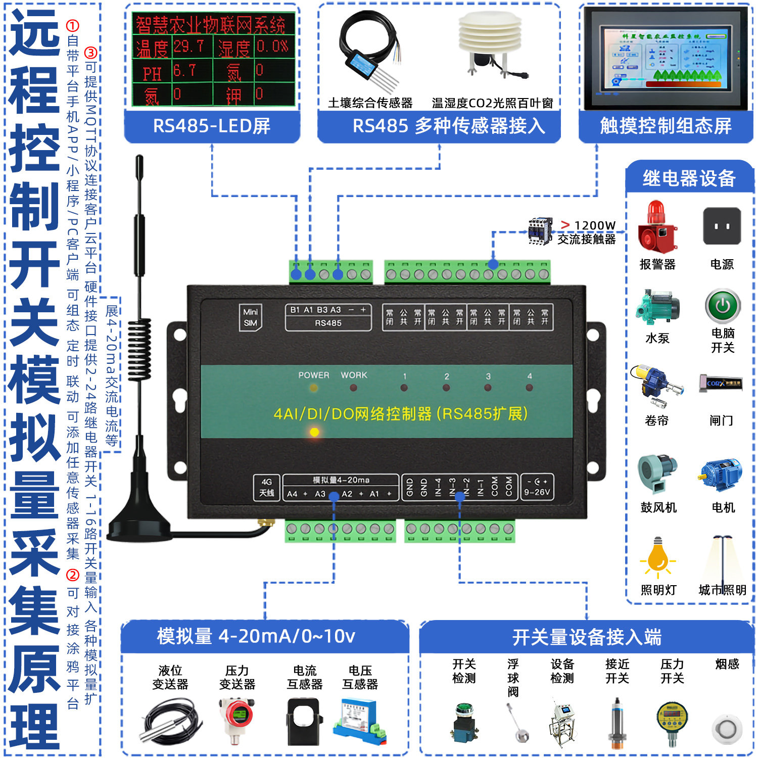 📚 4g远程定时开关控制器智能大棚温湿度光照氮磷钾土壤通风温室卷帘