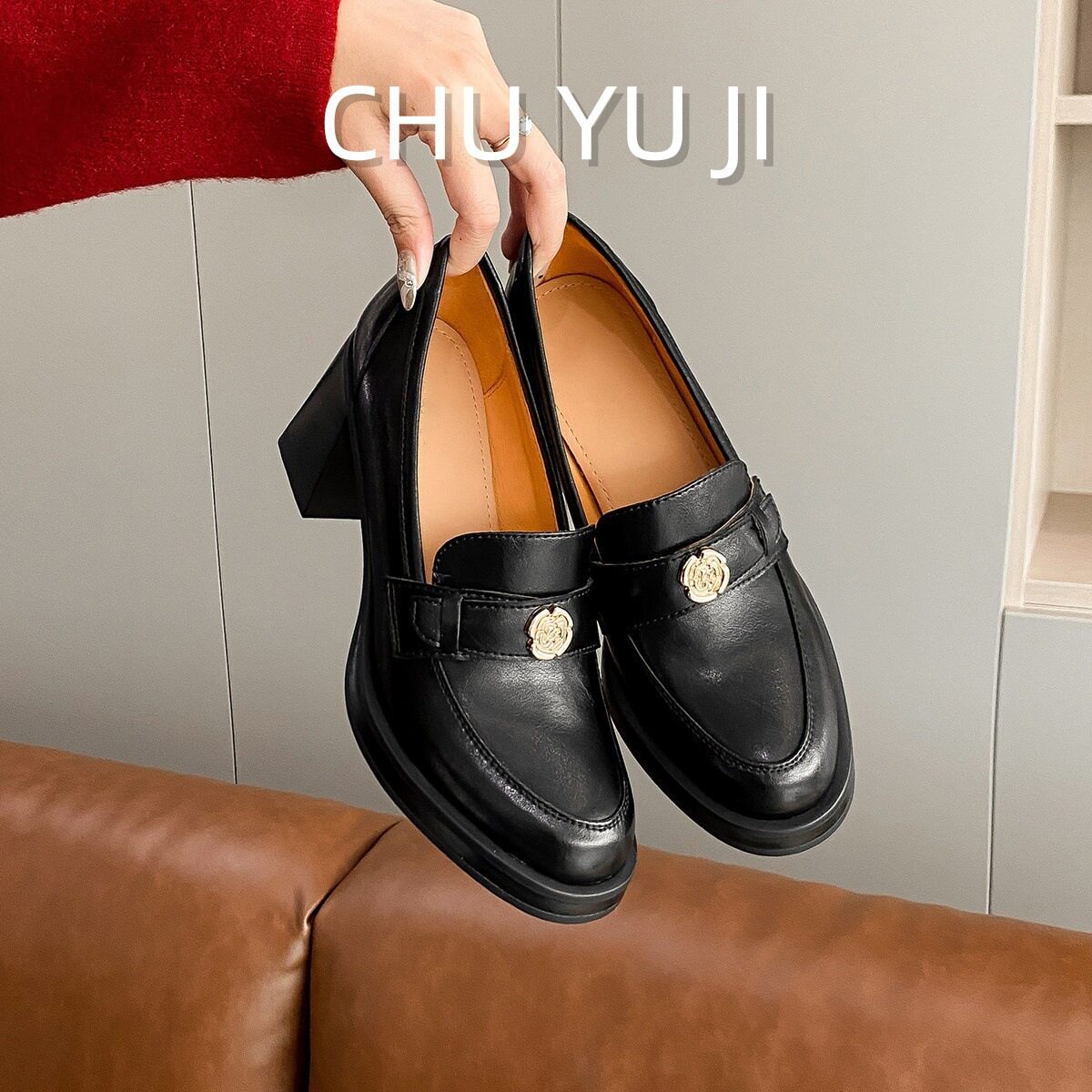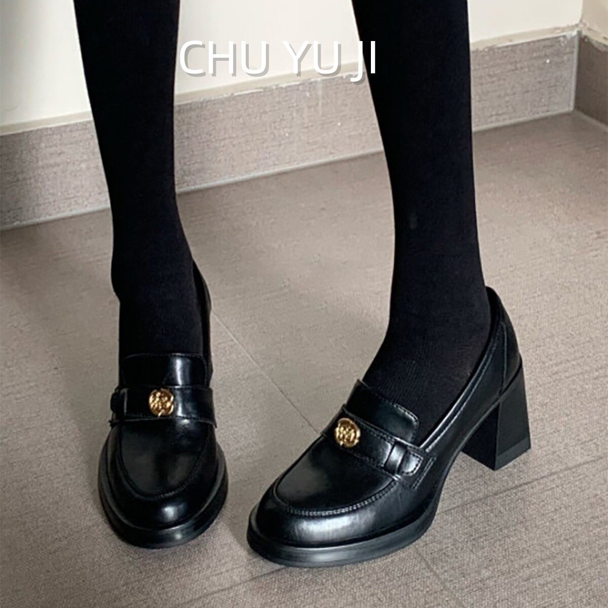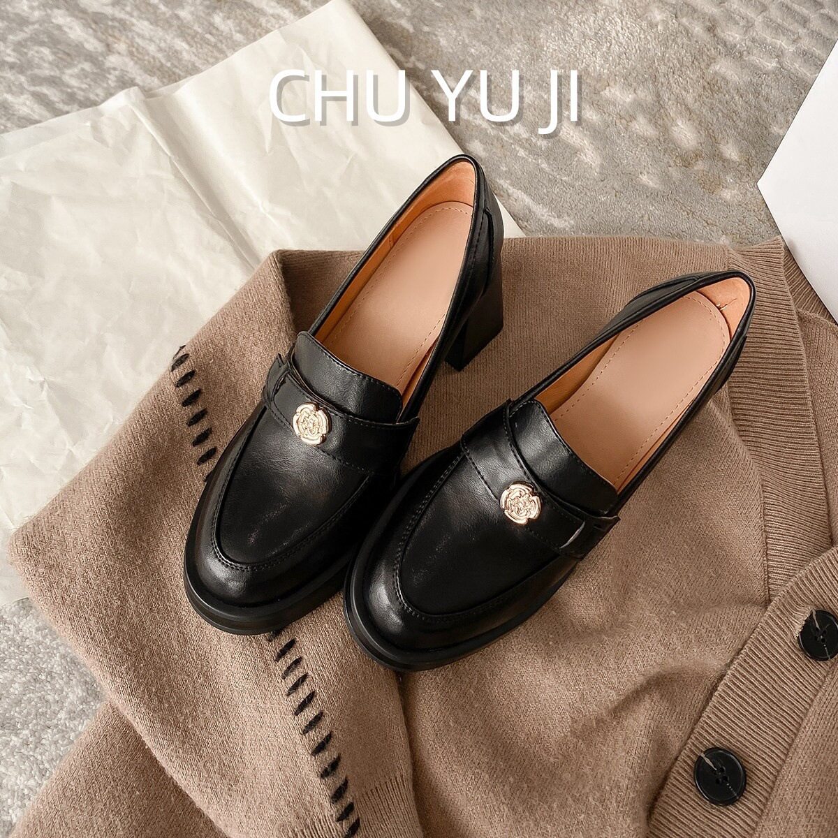 📚 初遇季山茶花乐福鞋女英伦风覆古jk小皮鞋2025新款粗跟高跟单鞋