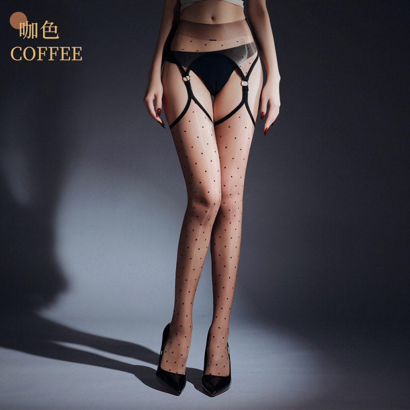 📚 性感圆环吊带长筒袜波点丝袜透明油亮黑丝情调约会战袍足jiao袜子