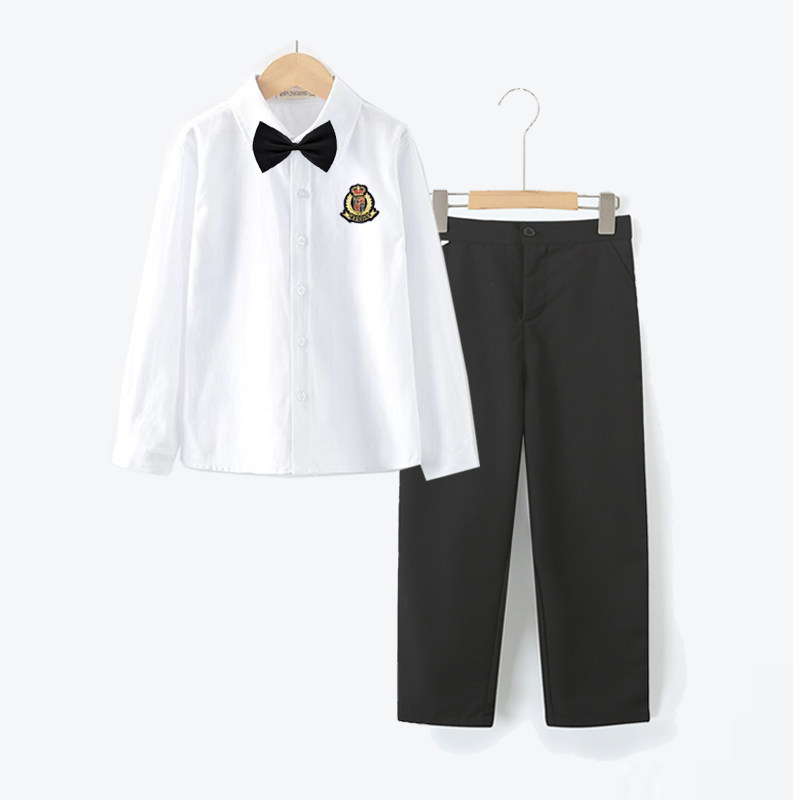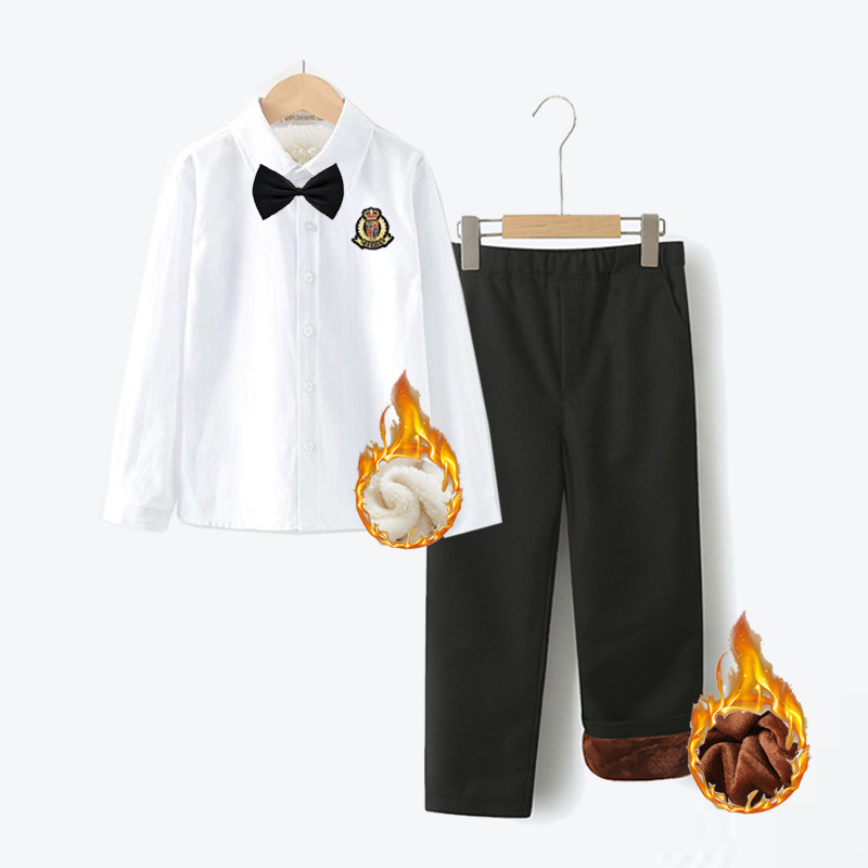 📚 加绒男童礼服套装儿童白色衬衫黑裤花童主持人小学生表演出服秋冬