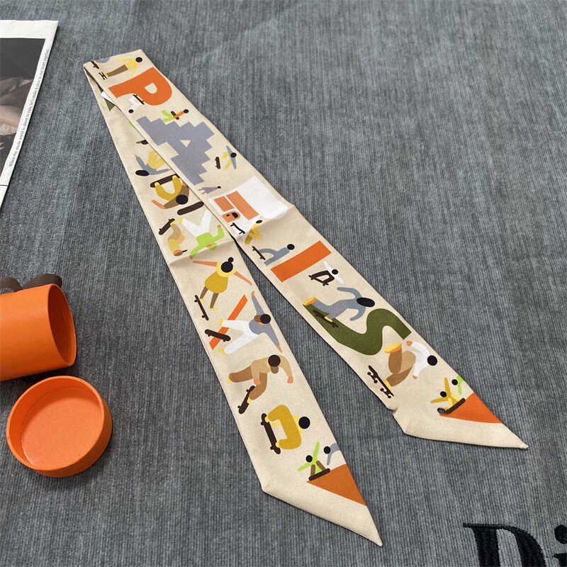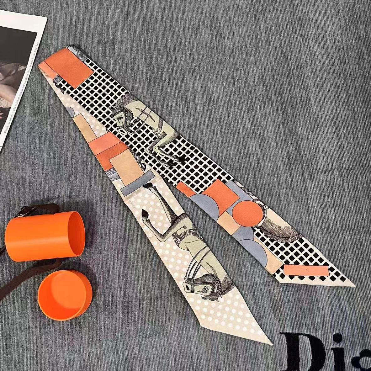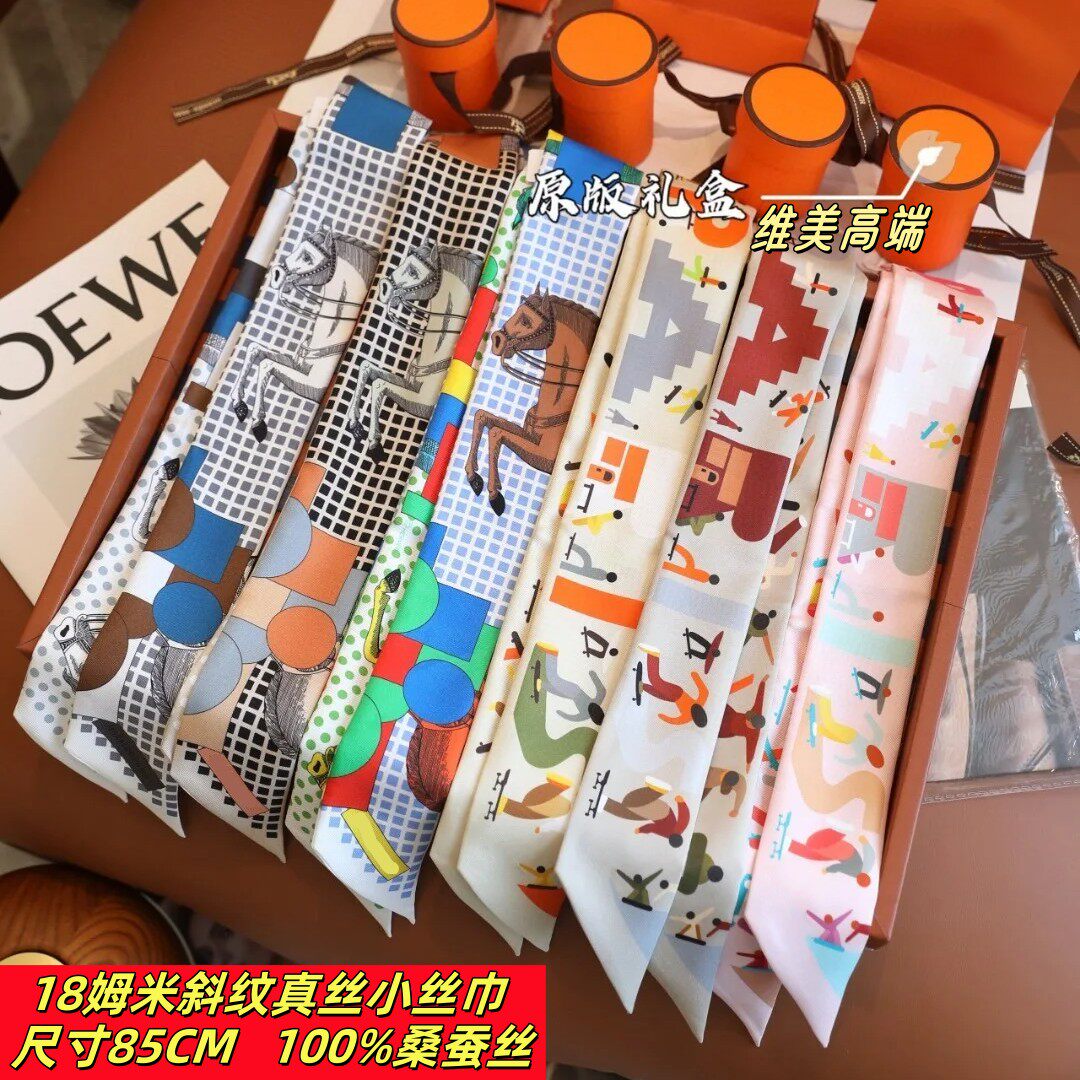 📚 H家2025新款Twily丝巾绑包包带手柄真丝小丝带束发h长条细窄丝巾