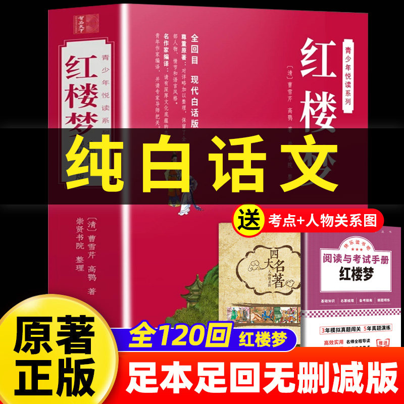 📚 【120回无删减】红楼梦原著正版完整版白话文原著正版小学生版五年级无障碍阅读版完整版 初中生全集四大名著现代曹雪芹中小学生版