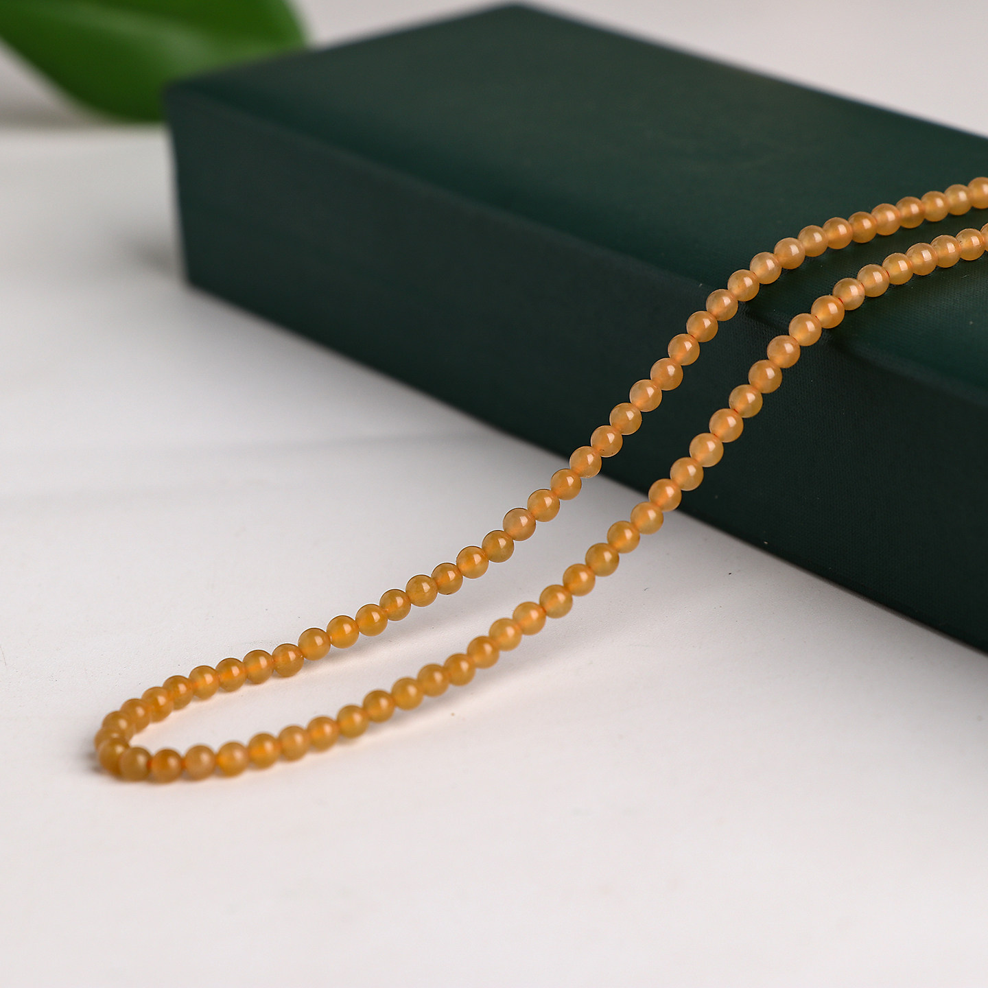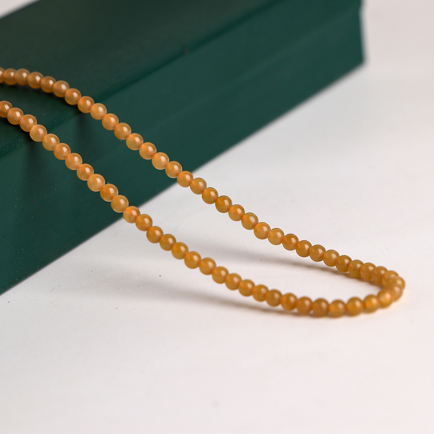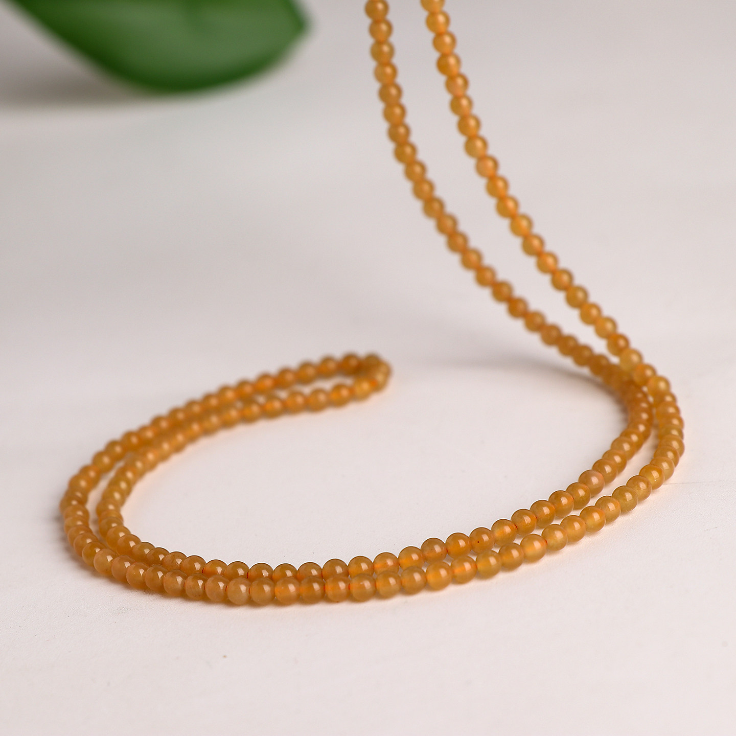 📚 天然新疆和田玉且末糖玉3mm黄金糖小米珠项链多圈手链玉珠链挂绳