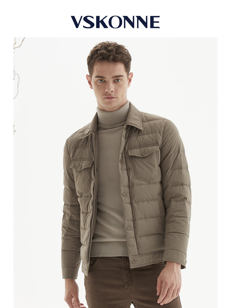 📚 VSKONNE威斯康尼商场同款羽绒服男轻薄卡其色短款白鸭80绒羽绒服