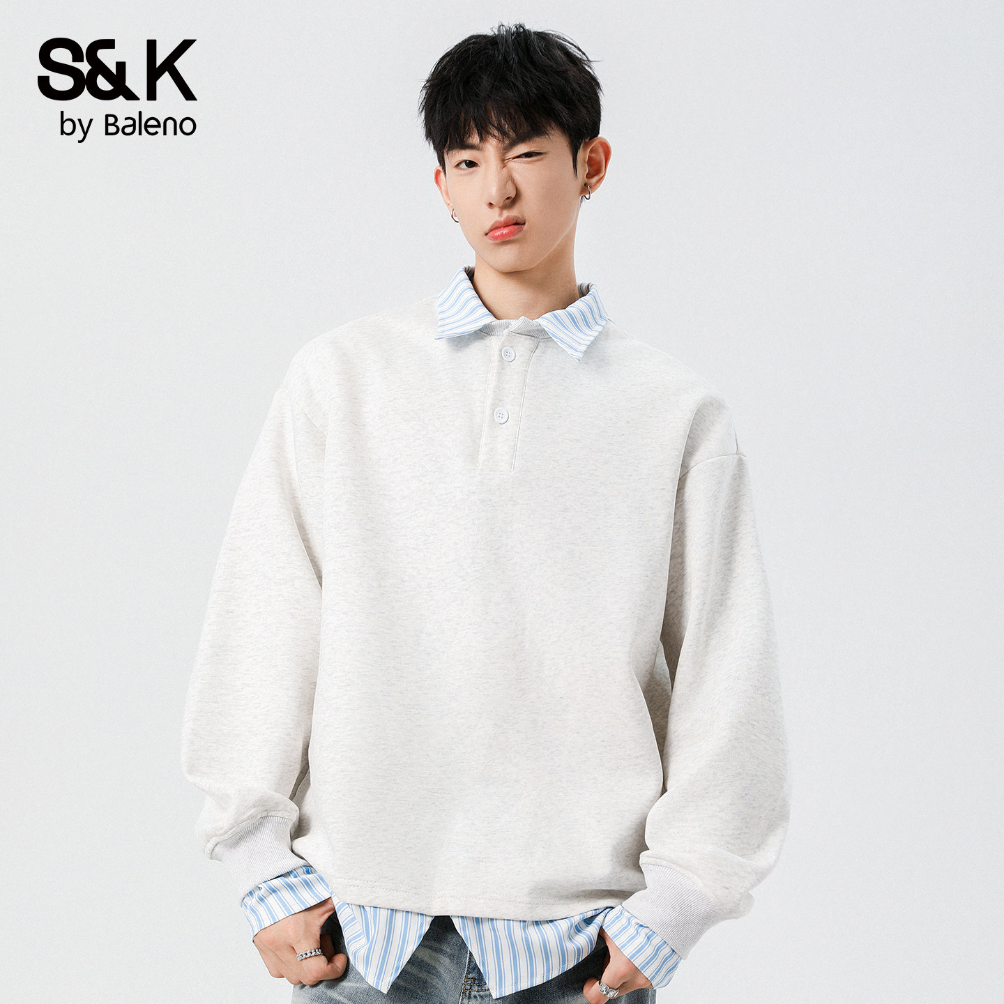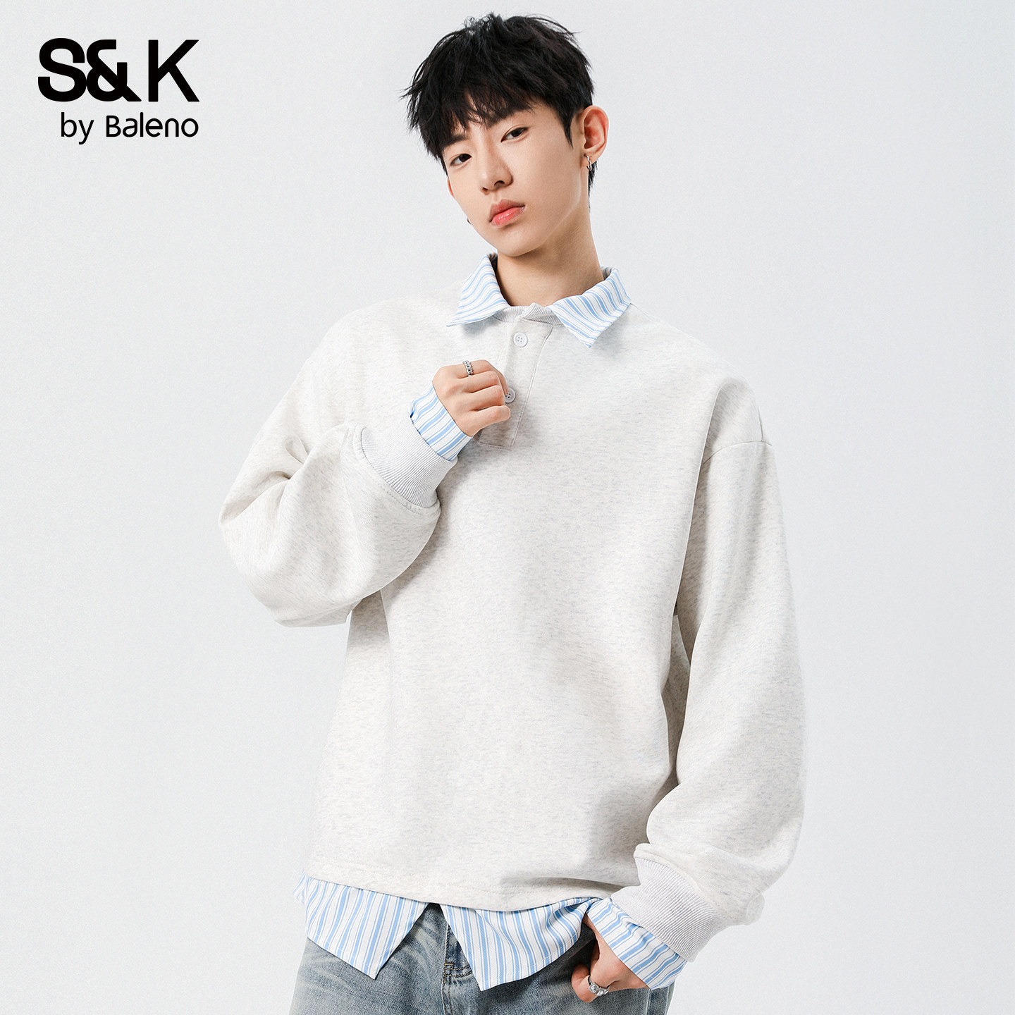 📚 班尼路SK卫衣男翻领假两件套头打底衫2025秋季新款宽松休闲上衣YS