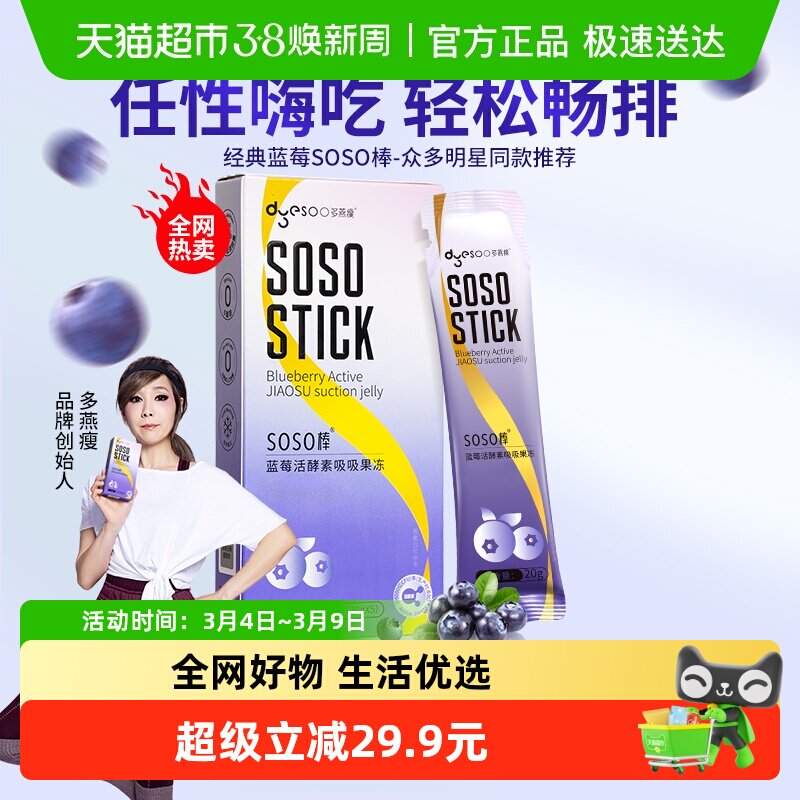 📚 多燕瘦SOSO棒蓝莓胶原活酵素果冻嗨吃益生菌元白芸豆阻断孝素果冻