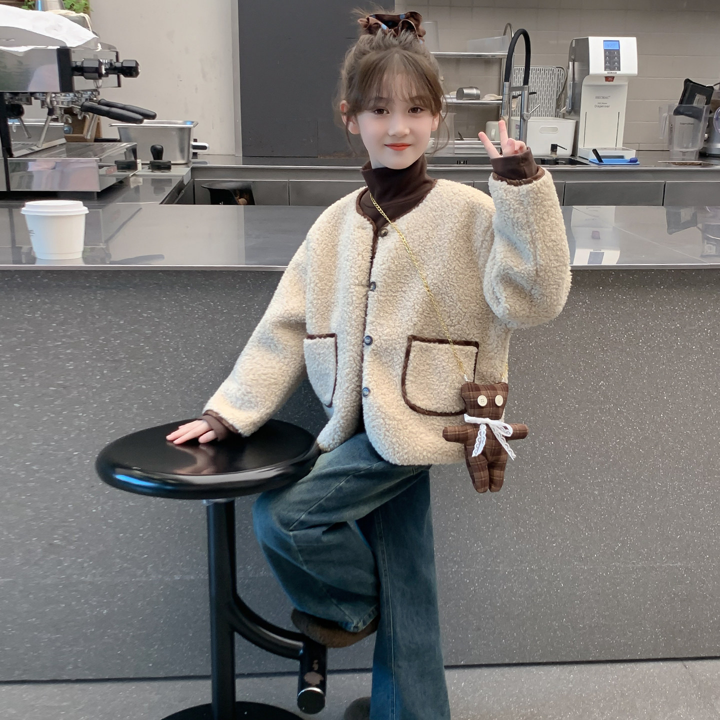 #女童秋冬款外套 #网红洋气好看 #加厚羊羔毛女孩冬装上衣 #券后价66
