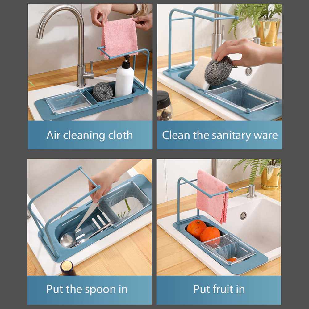 📚 Telescopic Kitchen Bathroom Sink Rack Soap Sponge Drainer St