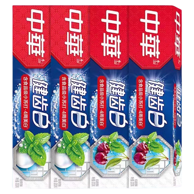 📚 中华小苏打健齿白牙膏正品官方店亮白去渍200g4只含氟家庭实惠装