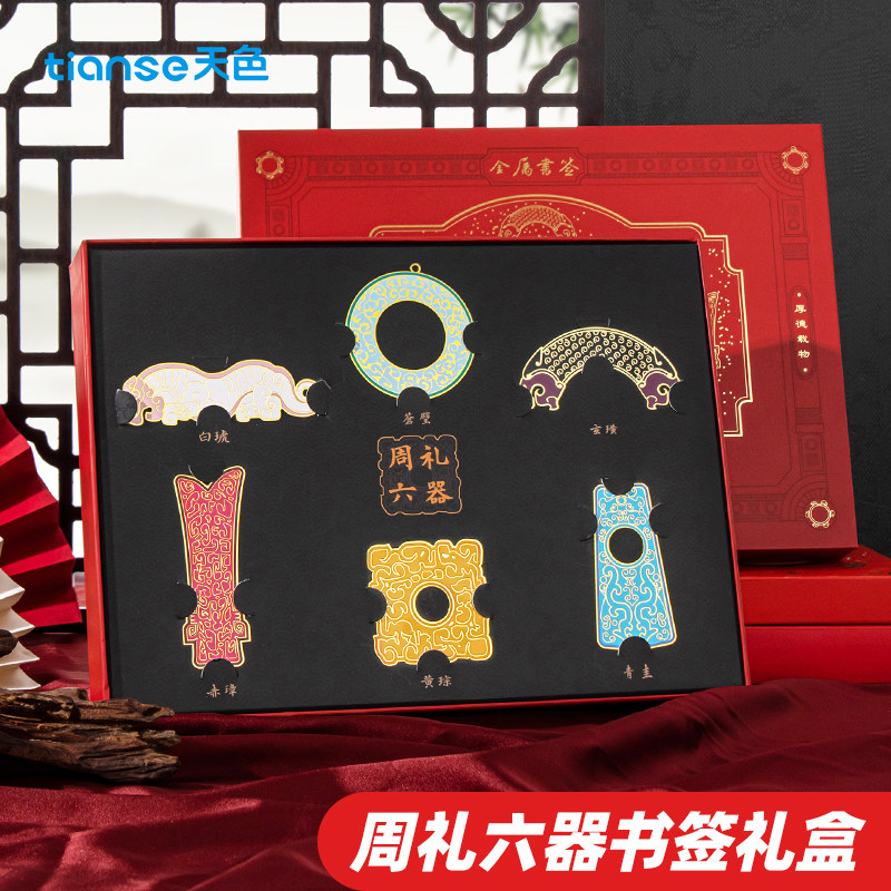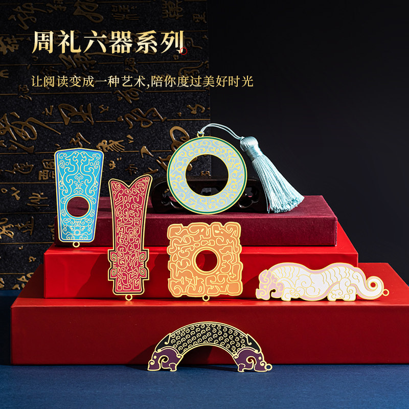 📚 天色周礼玉器六色书签中国古风特色礼品送老外创意文创黄铜金属镂空雕刻国潮文创小礼品生日商务伴手礼纪念品