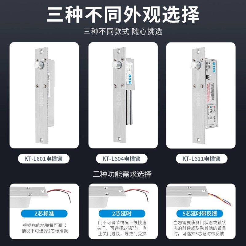 📚 KOB门禁电插锁12V门禁锁暗装嵌入式插销锁玻璃门延时反馈电控锁