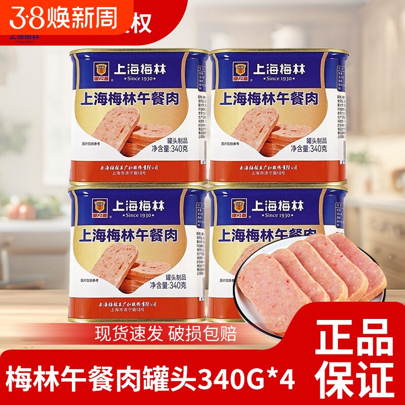 📚 上海梅林午餐肉罐头340g开罐即食用三明治火腿肉类火锅食材旗舰店