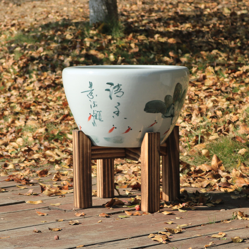 📚 古法鱼缸底座水缸底座实木架底托酒坛石磨茶叶罐承重十字支撑架