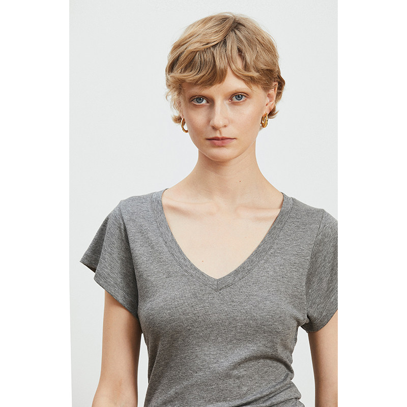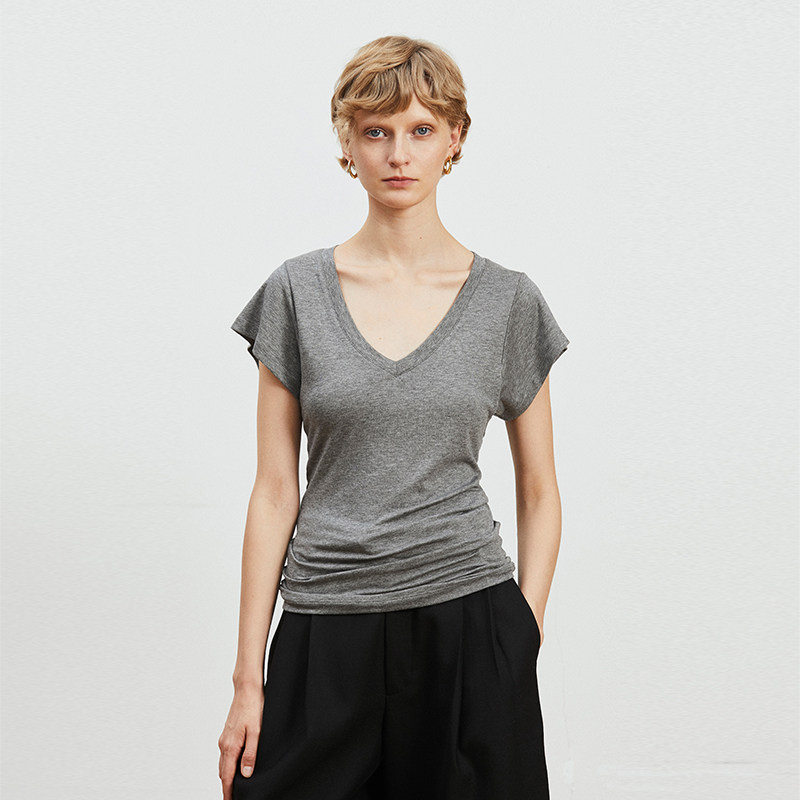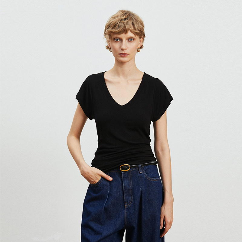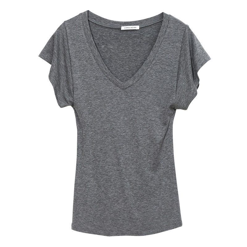 📚 Carolingian松弛气质!裸肤感Tencel兰精天丝羊毛宽袖V领显瘦T恤