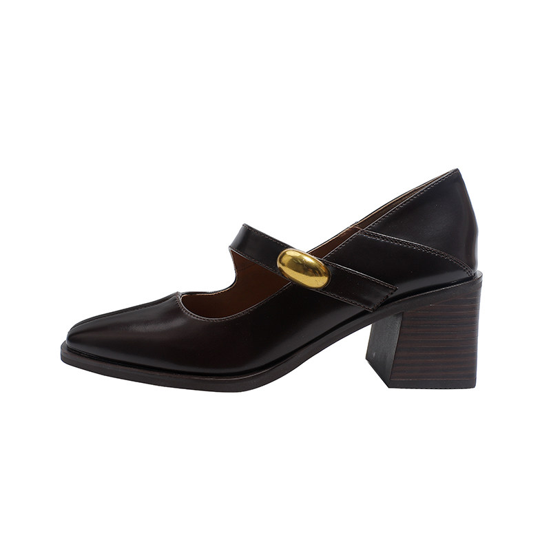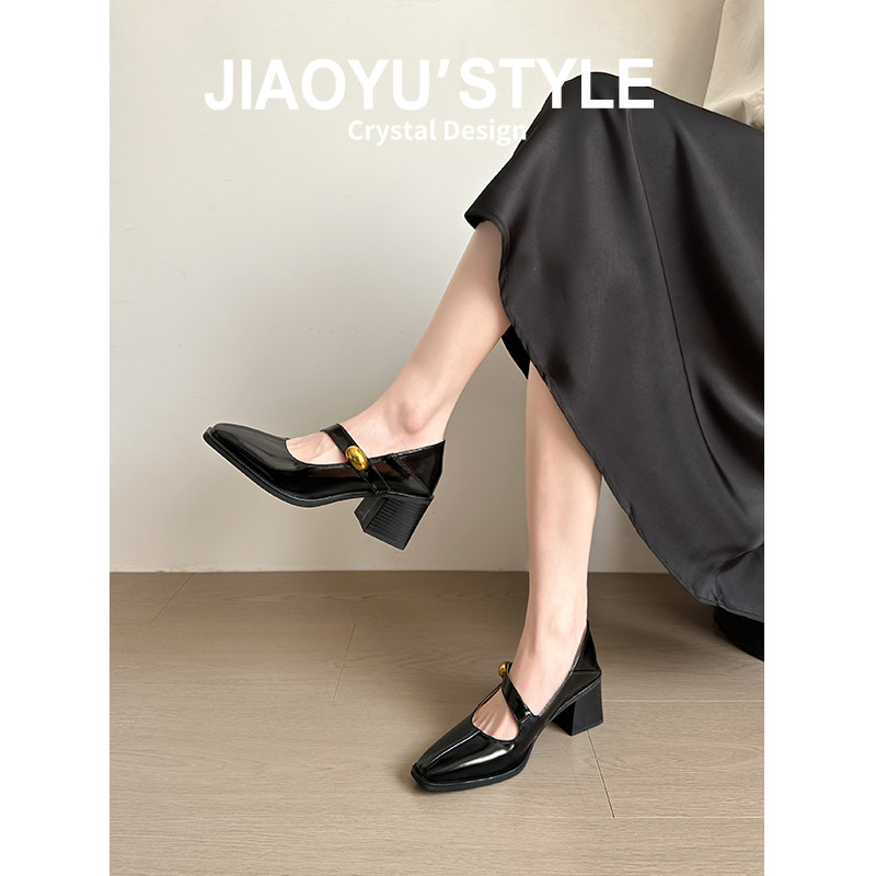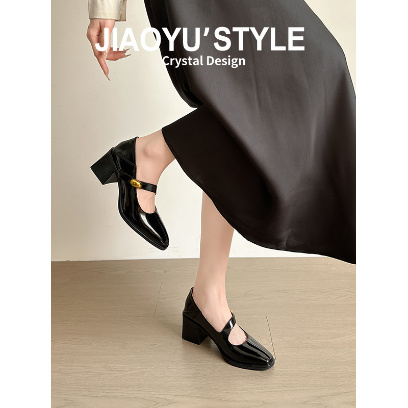 📚 真皮~骄屿复古粗高跟玛丽珍鞋一字带方头通勤单鞋浅口气质小皮鞋