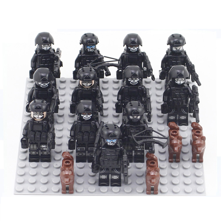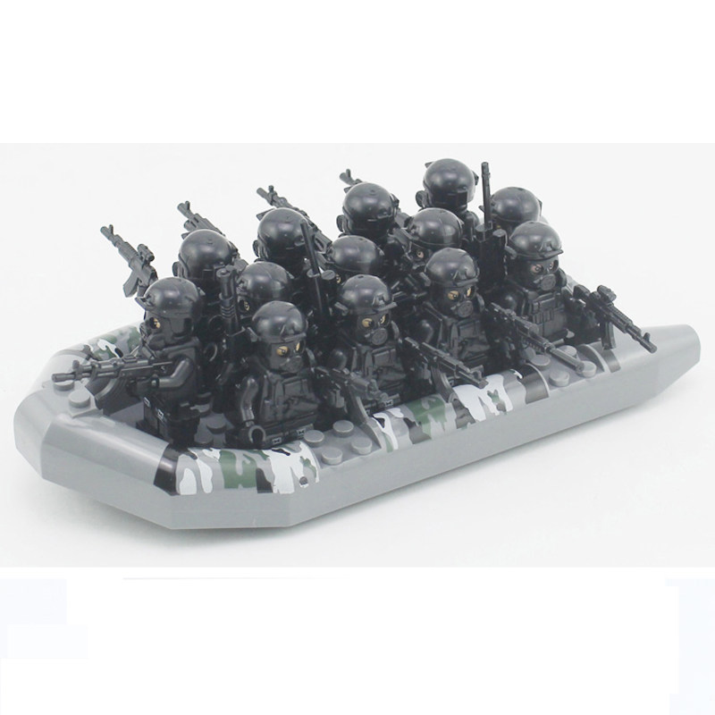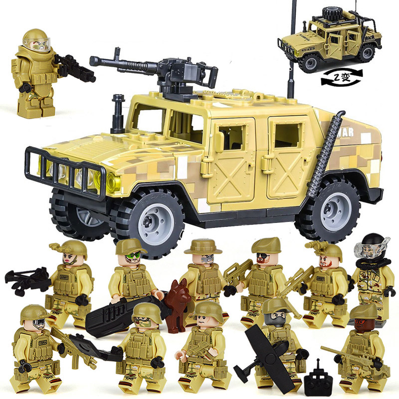 📚 军事积木小兵人仔二战特种兵悍马装甲车警察士兵军人男孩拼装玩具