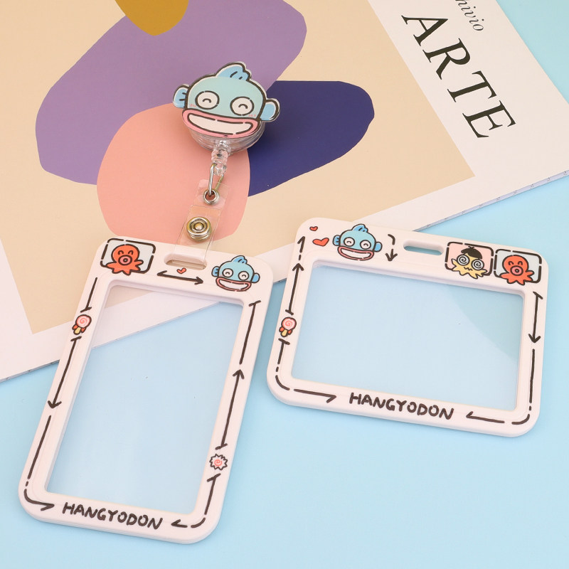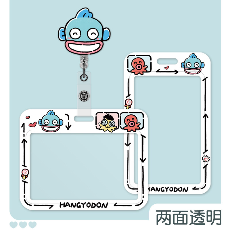 📚 双面透明卡套横版ins风可爱丑鱼个性创意学生护士胸卡挂绳伸缩扣