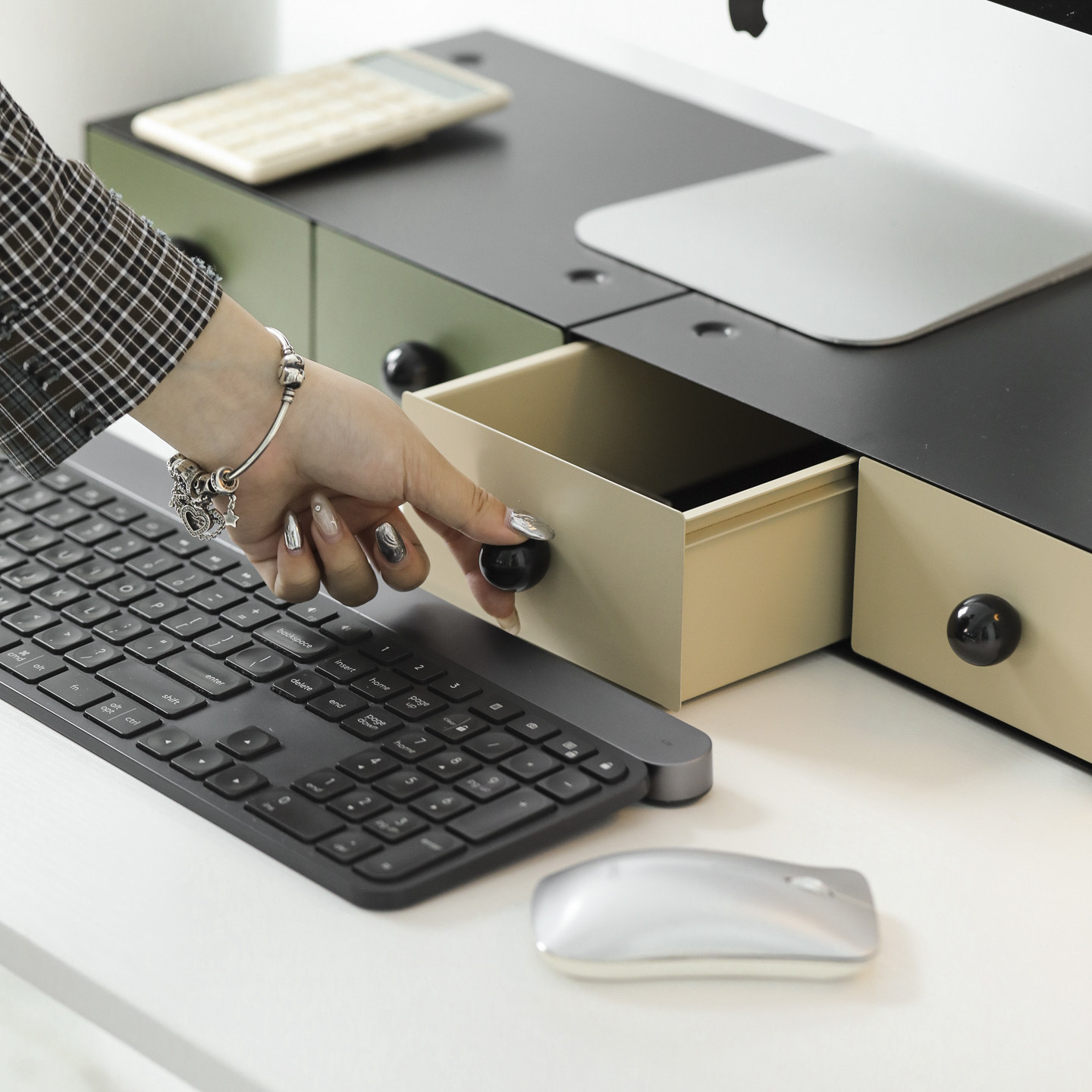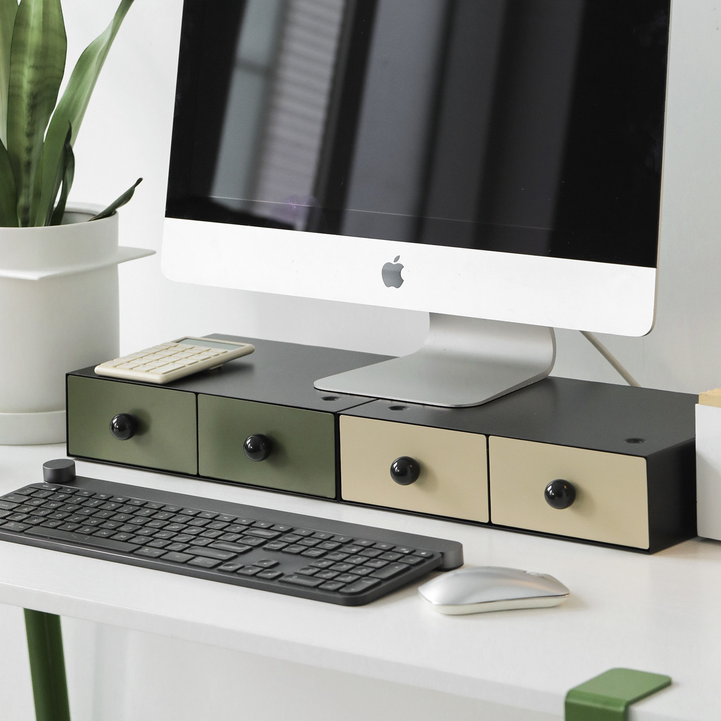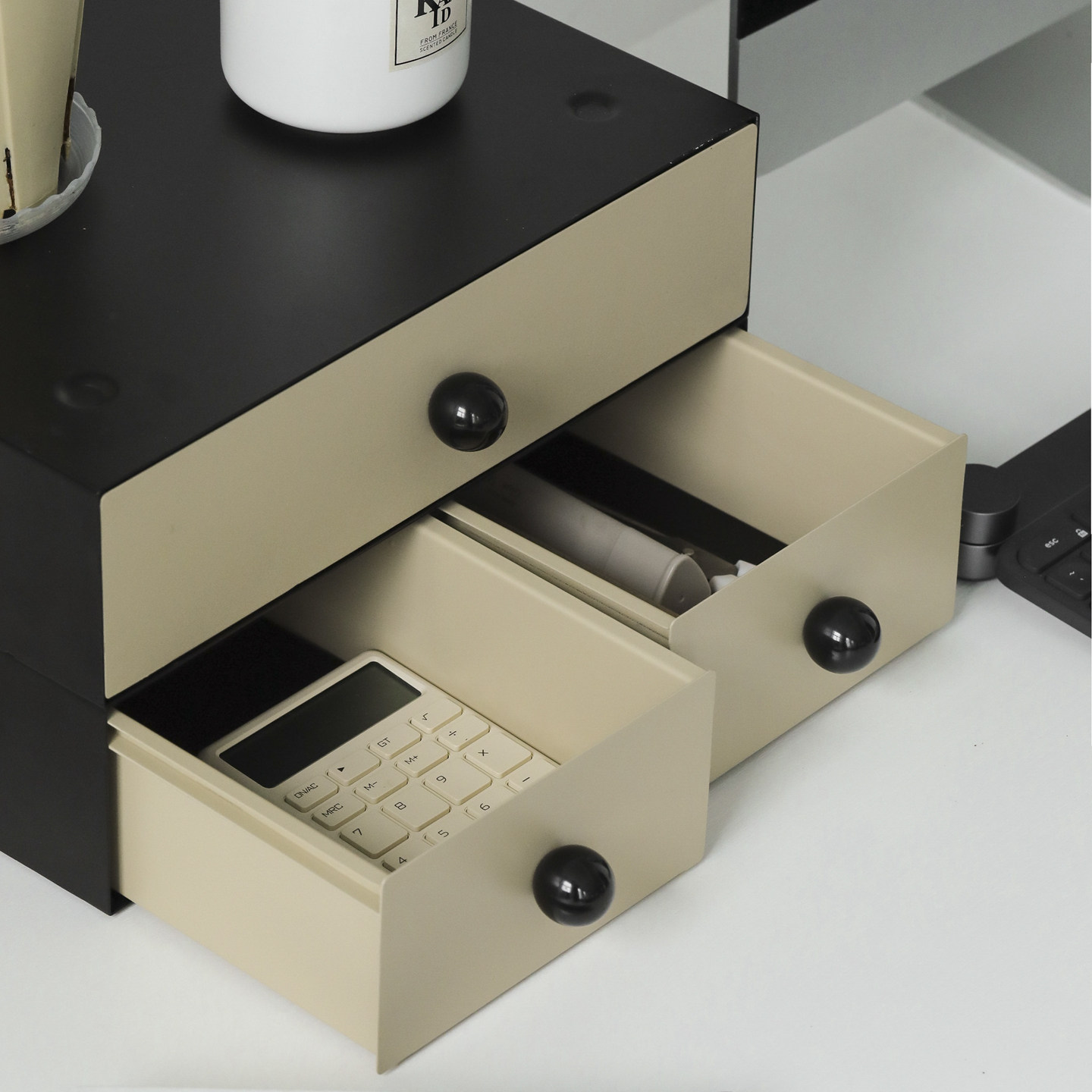 📚 桌面收纳双格抽屉 可堆叠抽屉式收纳盒 显示器增高架 金属小抽屉