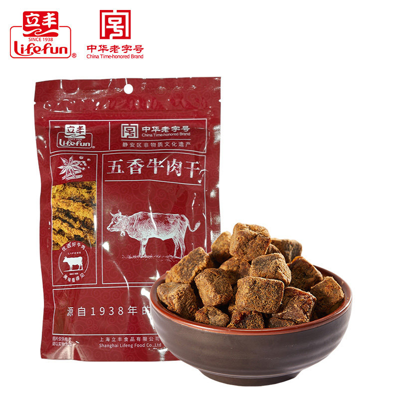 📚 上海立丰牛肉干粒五香味独立小包肉食零食户外高能量130g肉铺干