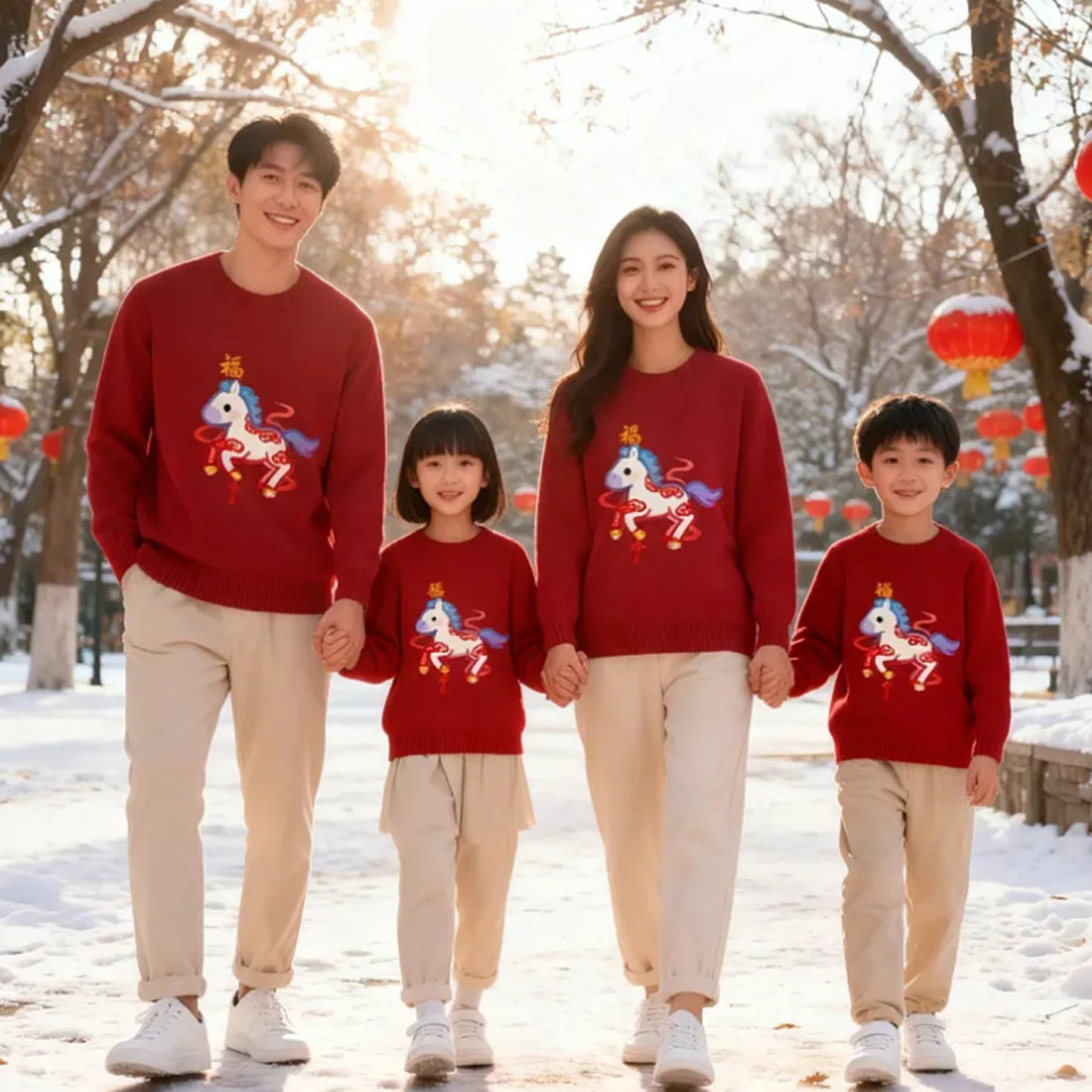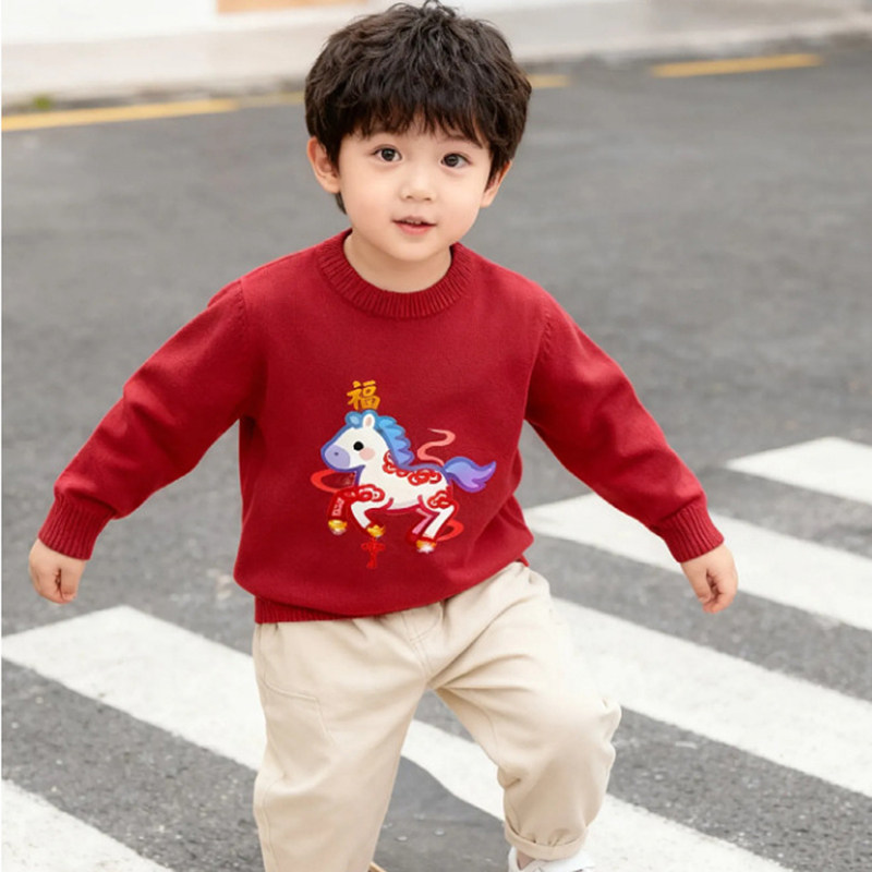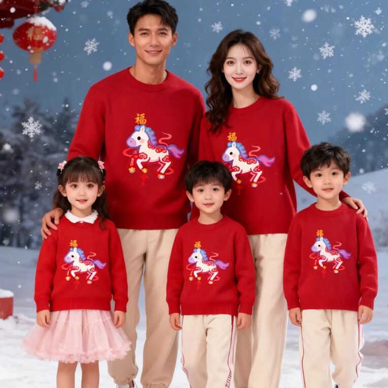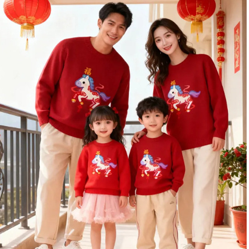 📚 拜年服亲子装毛衣新年一家三口全家福马年红色针织衫秋冬季母女装