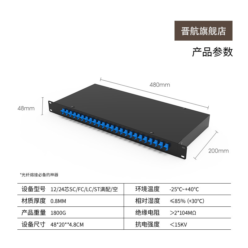 📚 晋航 12口24芯满配终端盒尾纤满配LC/SC/FC光纤终端盒12芯24口机架式光缆终端配线架单模千兆万兆加厚ODF架