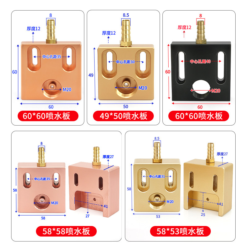 📚 线切割配件直侧进水中走丝眼膜模座铝合金喷水板50*50 53*5860*60