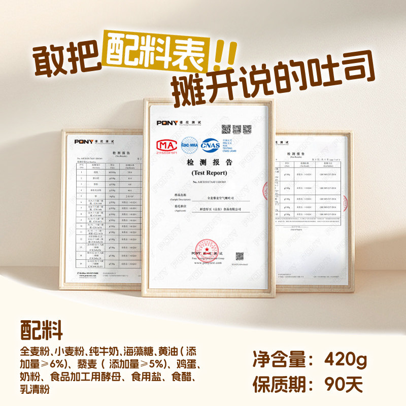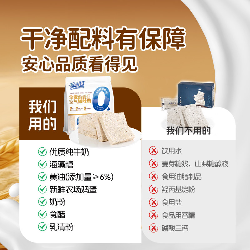 📚 鲜尝厚买藜麦厚切全麦无边吐司无蔗糖面包三明治早餐零速食蛋糕点
