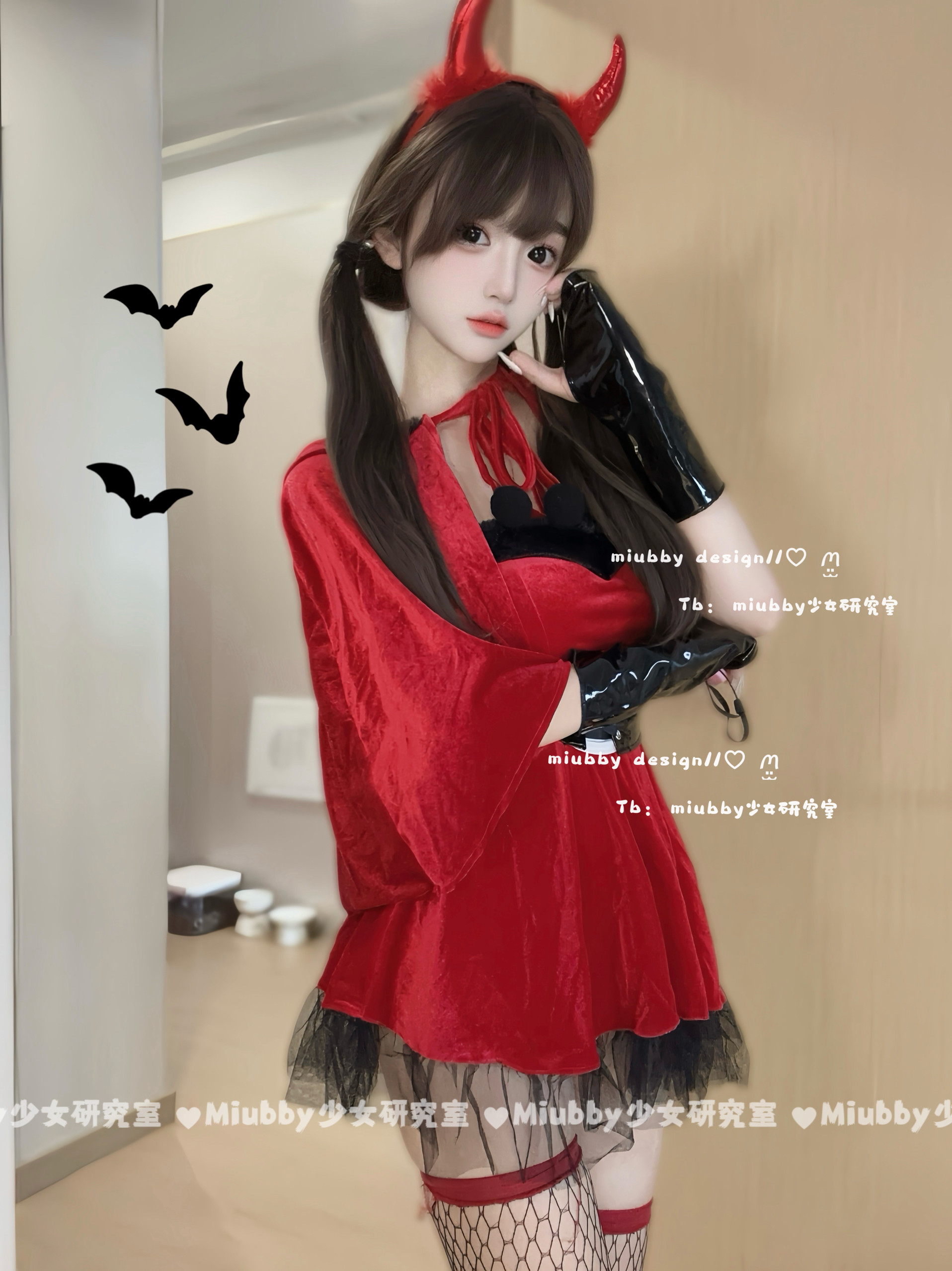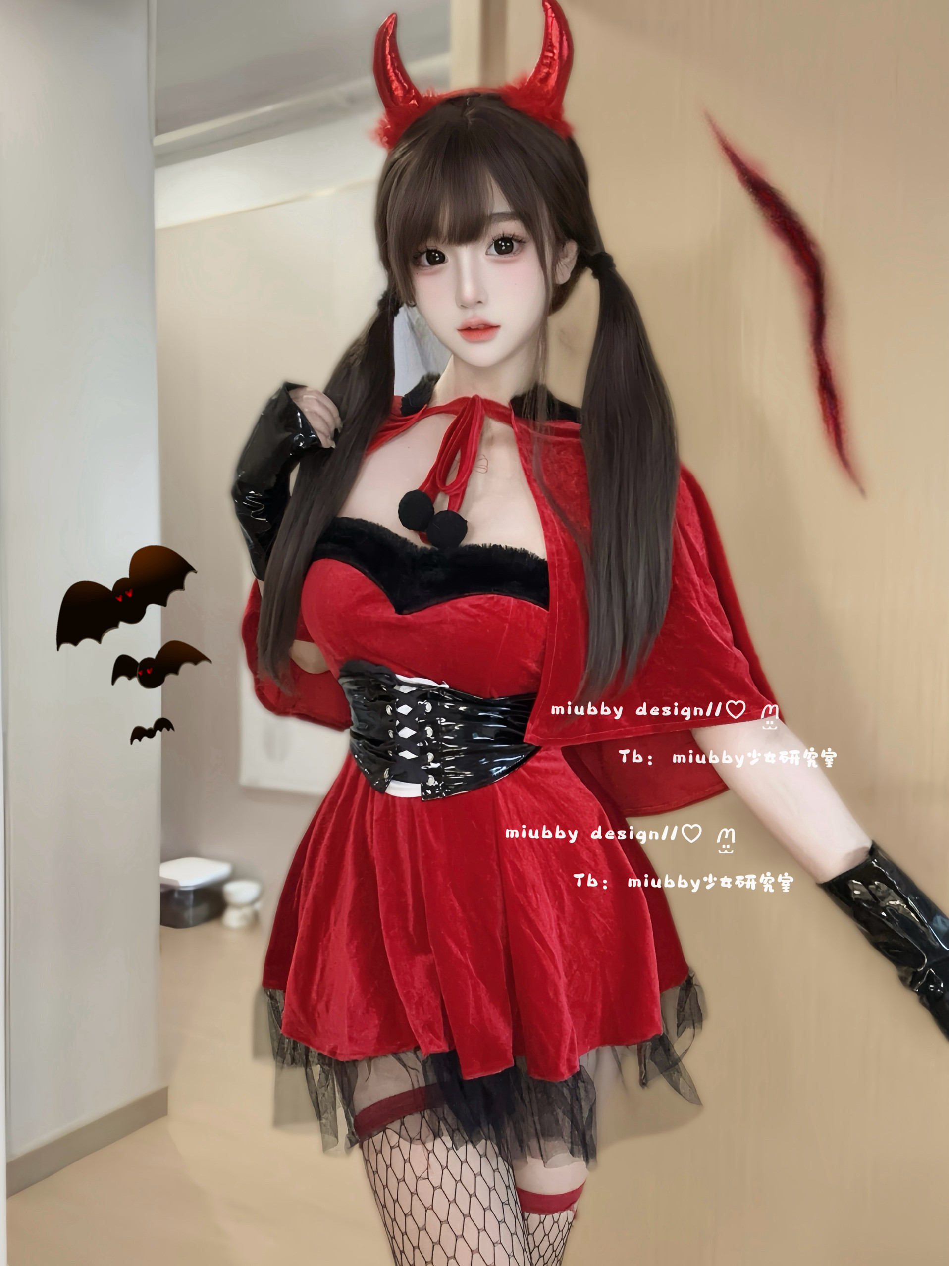 📚 Miubby「堕落魔女」红丝绒恶魔万圣节cos服套装性感披肩新年战袍