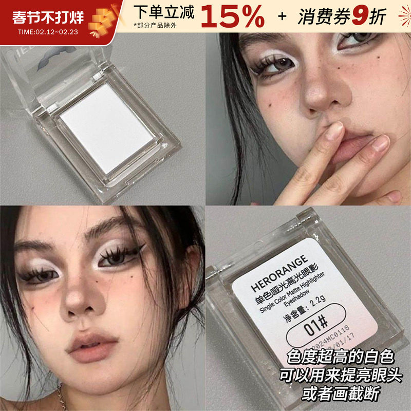 📚 HERORANGE纯白色眼影卧蚕眼头日常提亮眼部单色哑光高光粉便携女