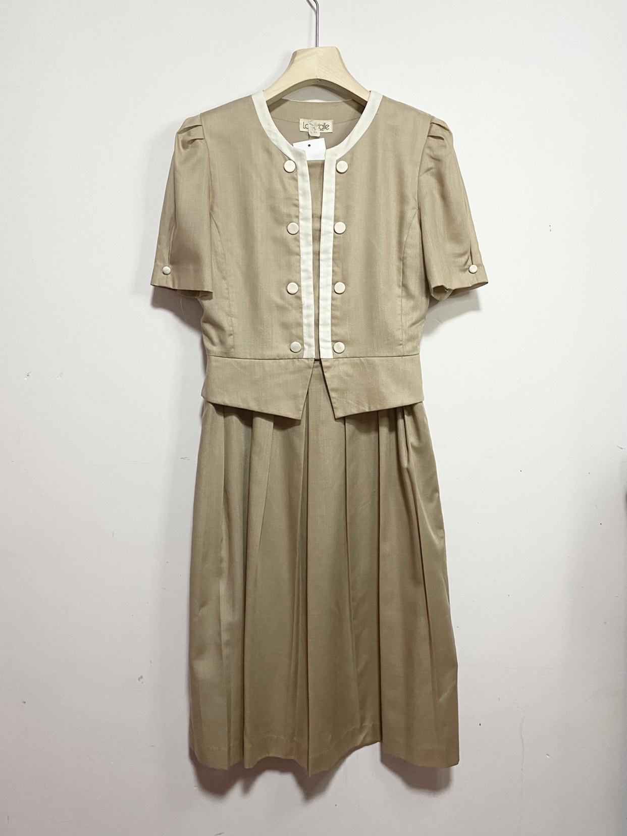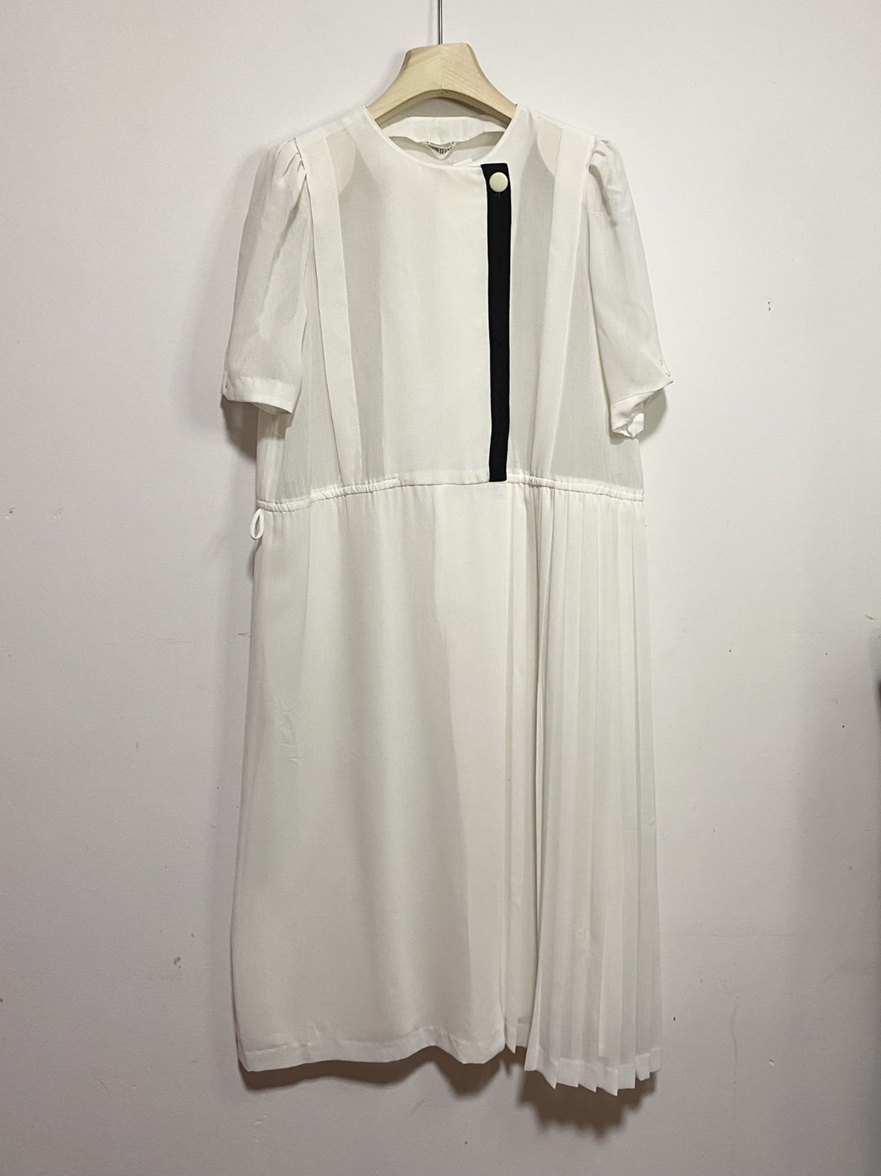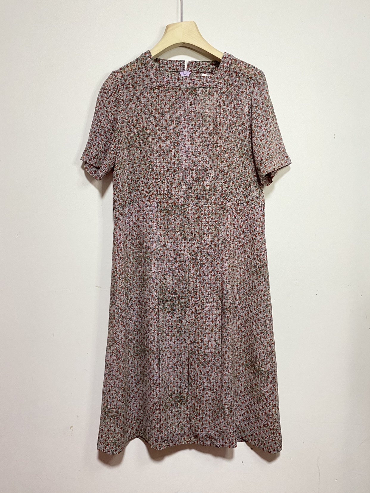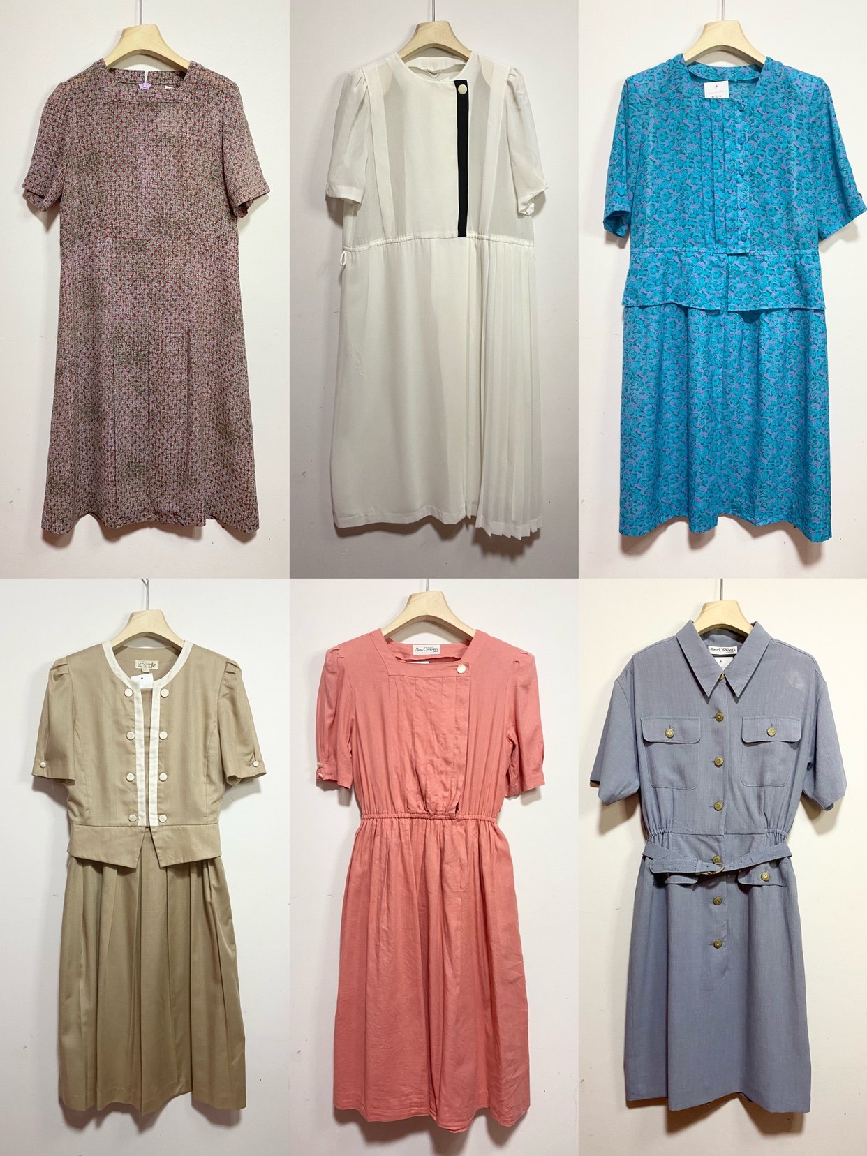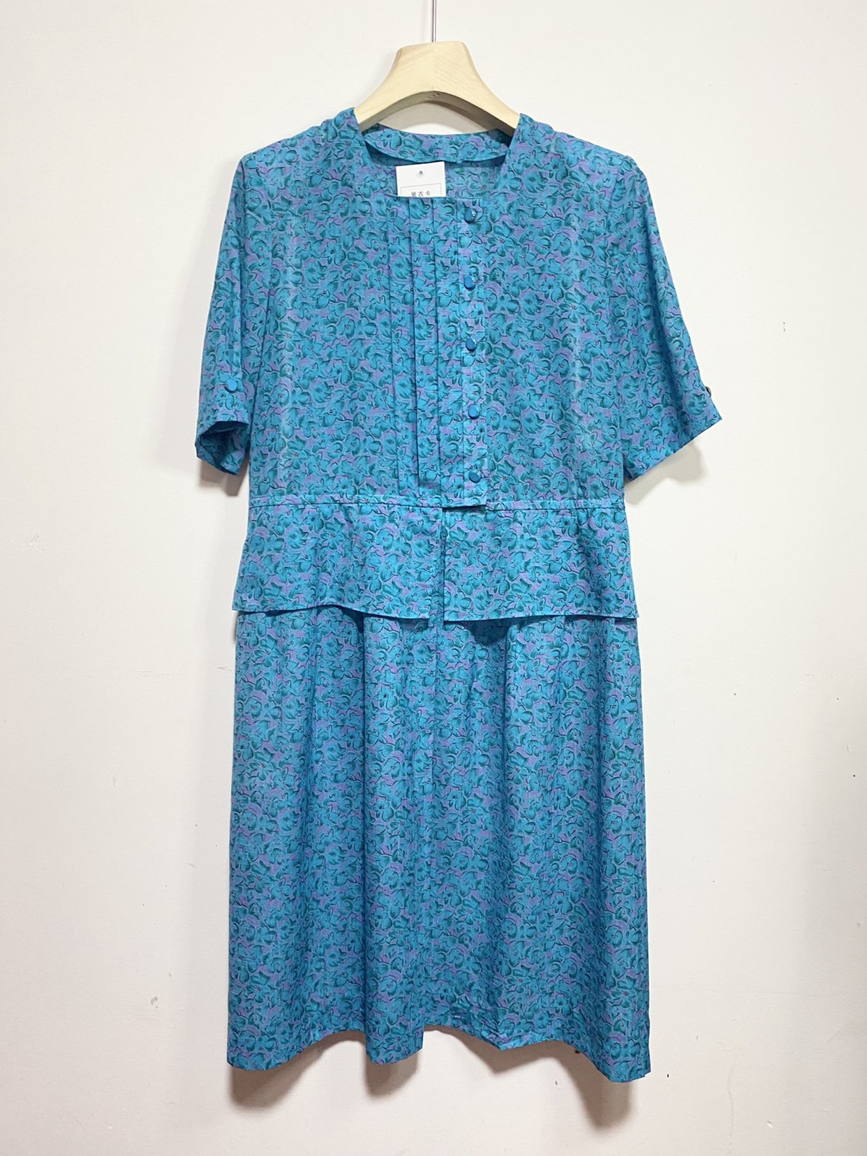 📚 天天古着薄连衣裙夏vintage日制修身假两件少女短袖长裙(L100z