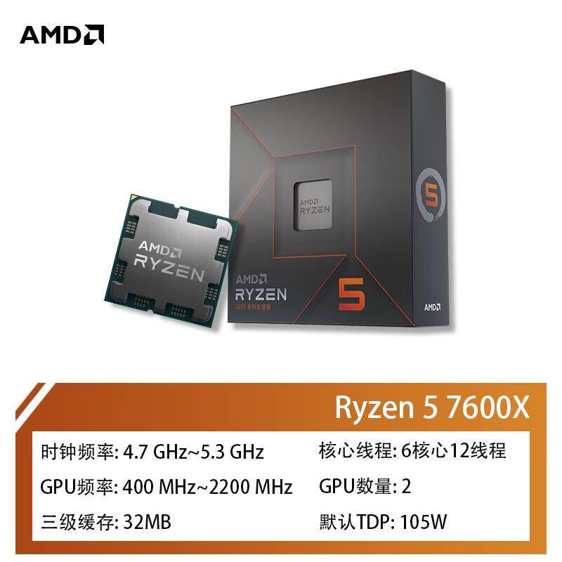 📚 AMD锐龙七代 7000系列处理器 6核12线程AM5接口R5 7600X 盒装CPU
