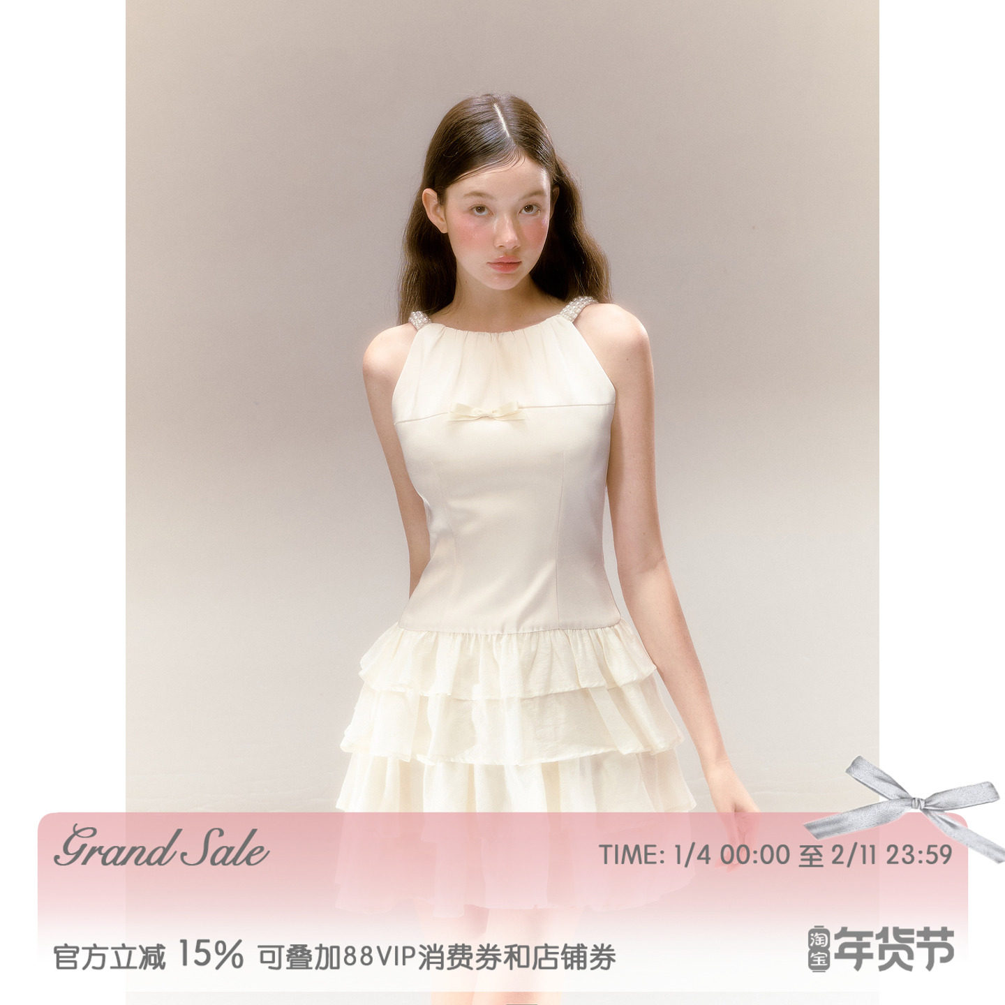 📚 RECIT原创设计 缎面挂脖连衣裙立体珍珠三层蛋糕裙