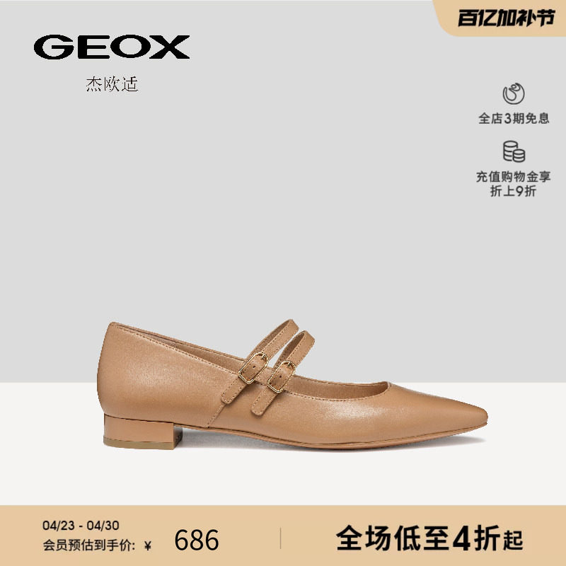📚 GEOX杰欧适春夏尖头粗跟玛丽珍鞋休闲复古风羊皮单鞋女