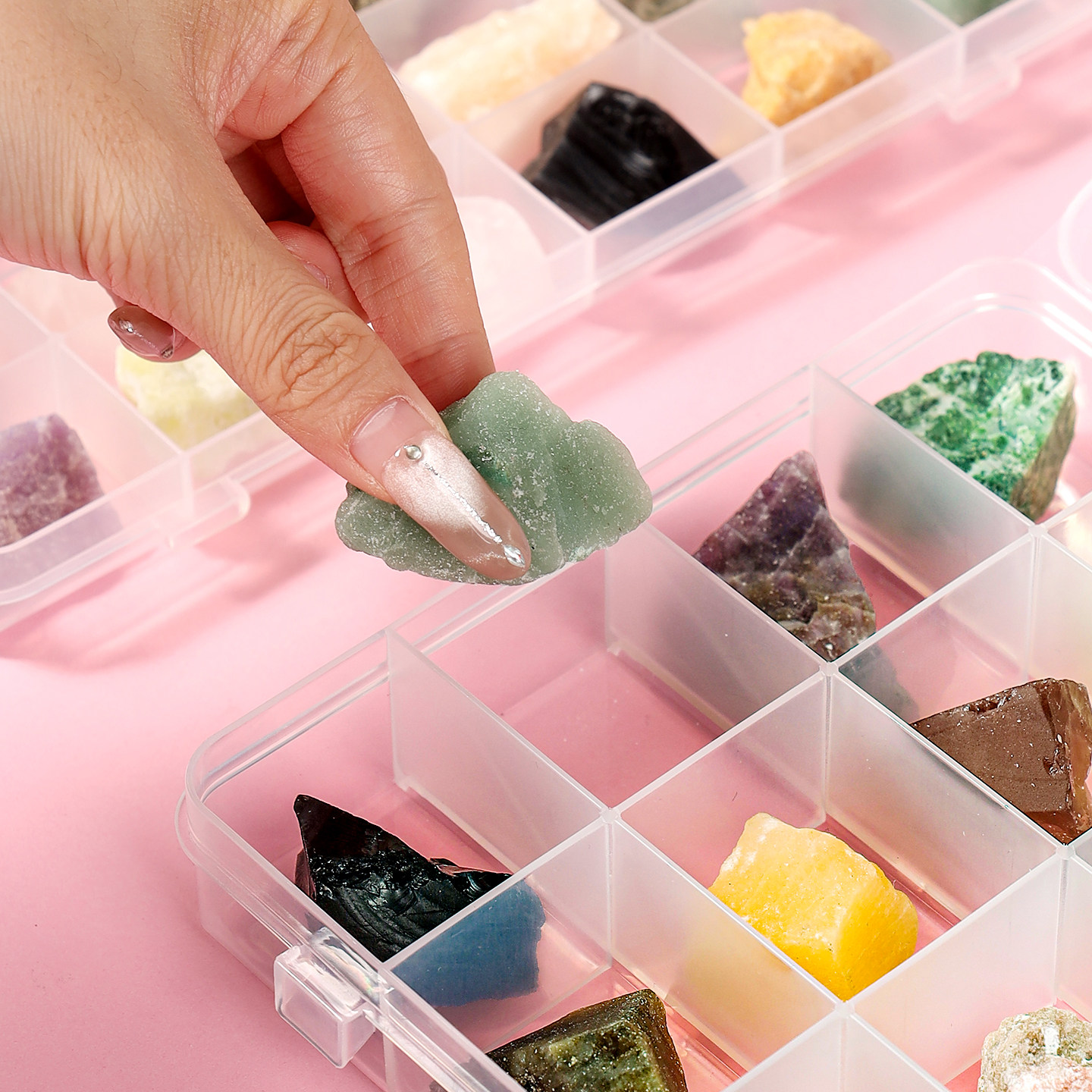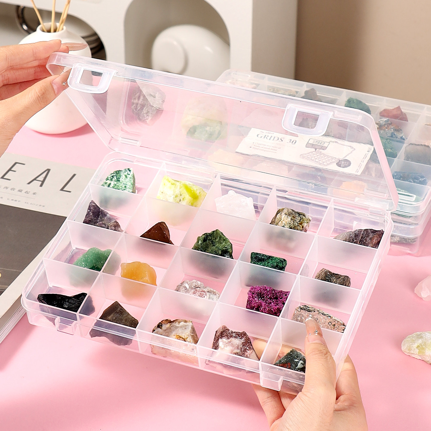 📚 奇异石头矿石收纳盒水晶体原石标本收藏分格整理盒透明宝石展示盒