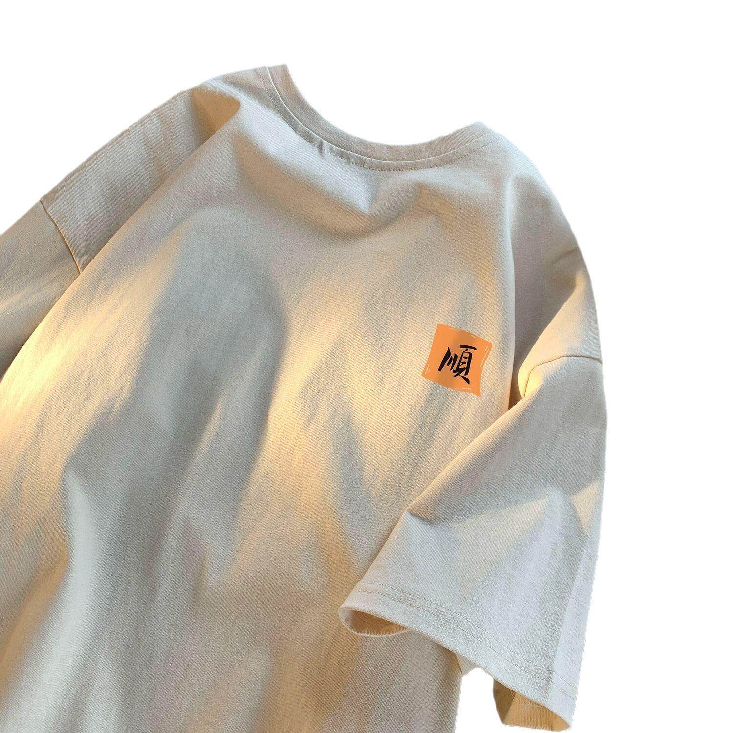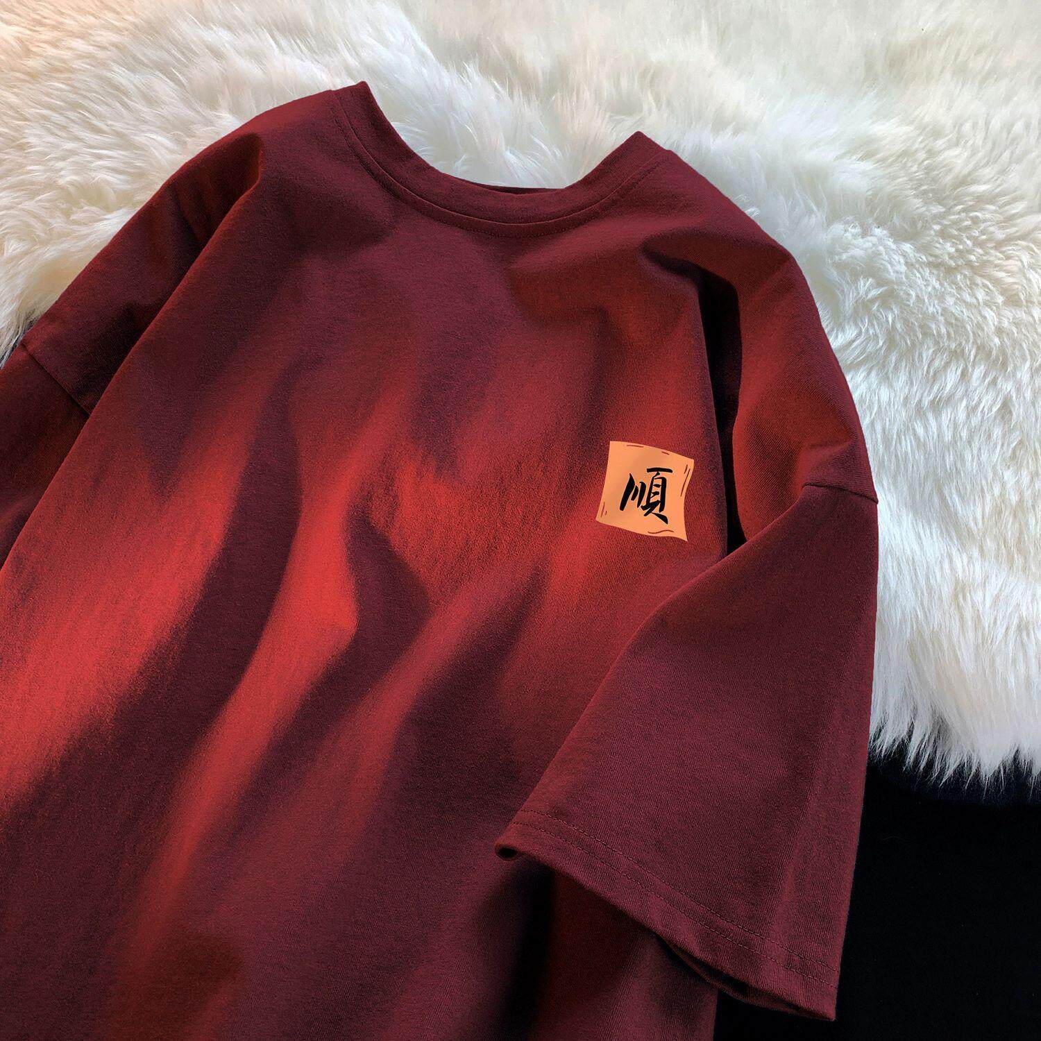 📚 Chinese Tee 中国风短袖T恤男夏季国潮宽松大码情侣酒红色圆领体