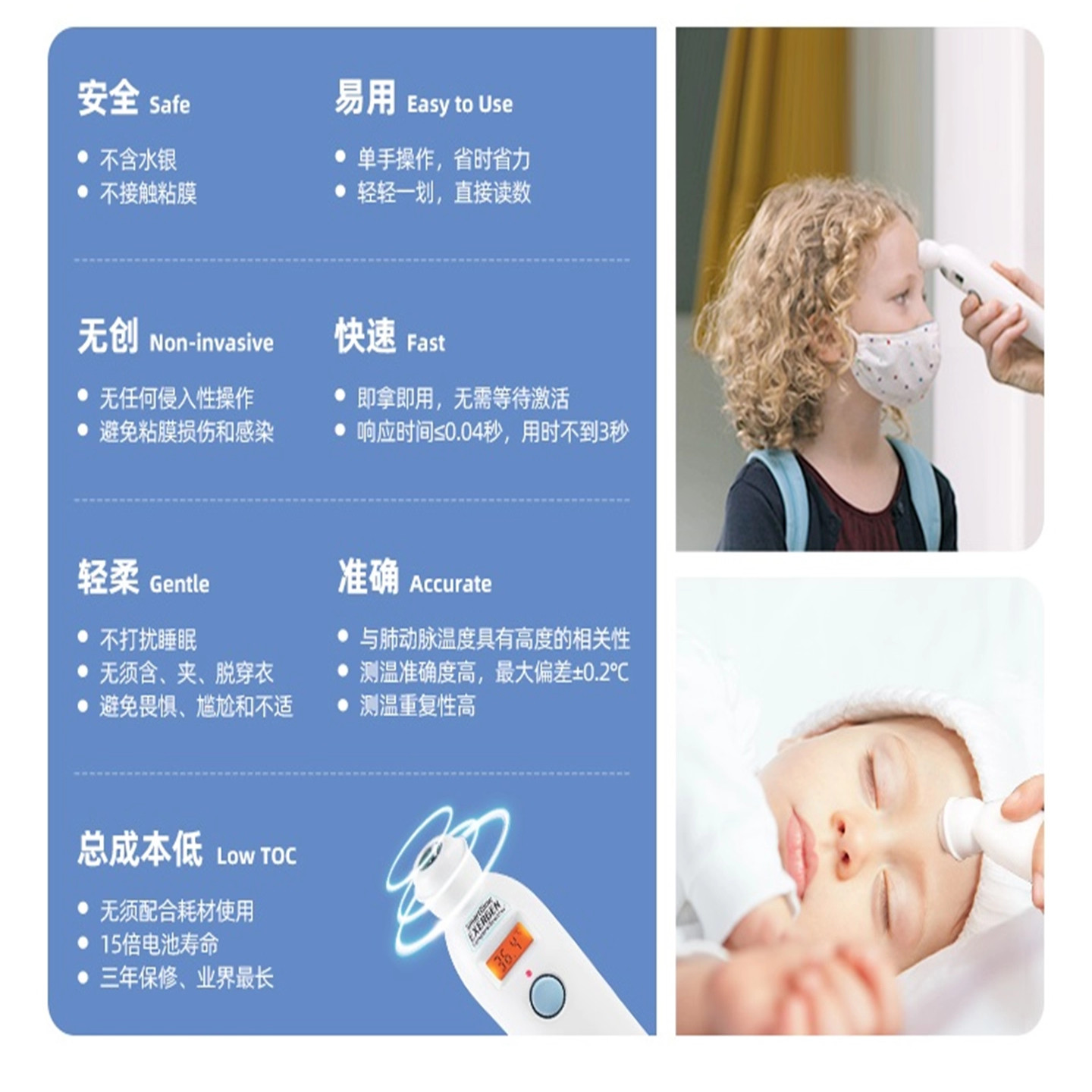 📚 美国进口Exergen颞动脉体温计额温枪医用高精度精准婴儿儿童成人