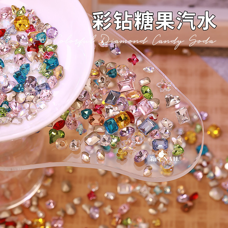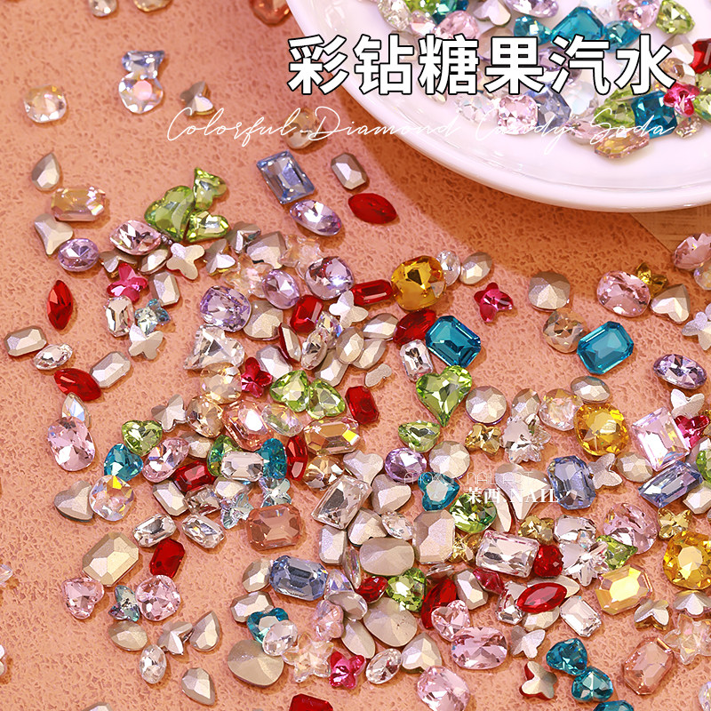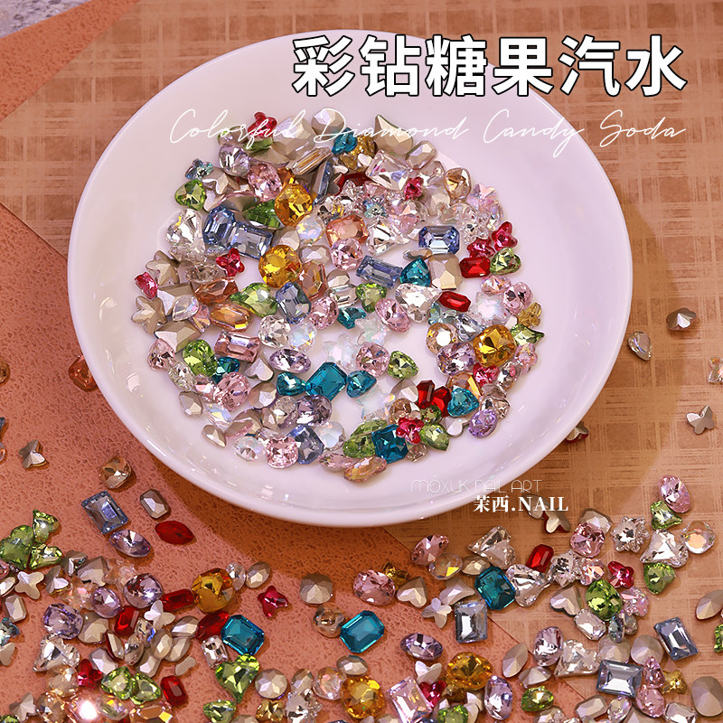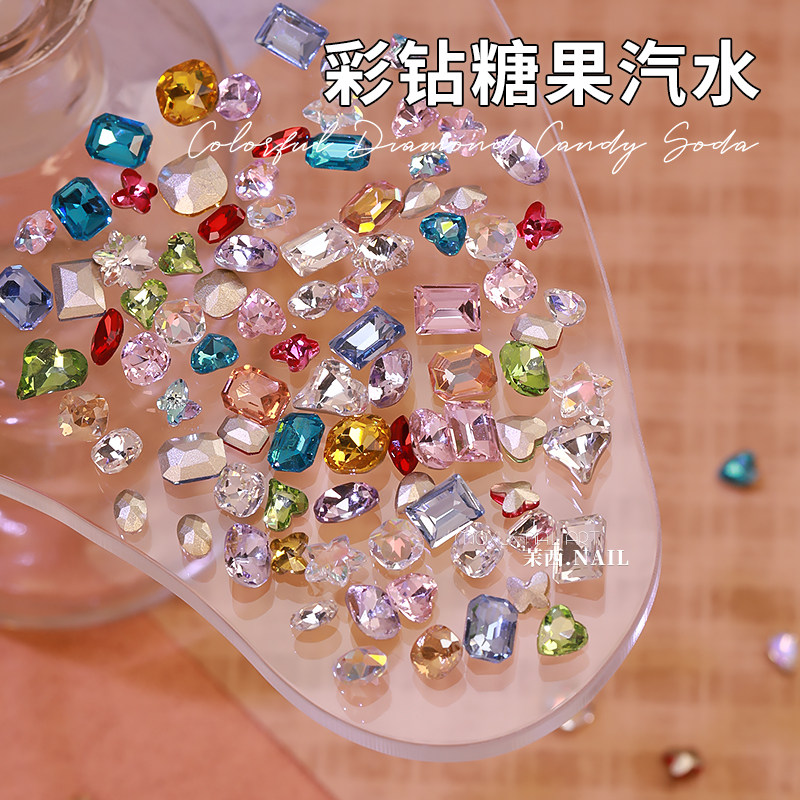 📚 网红超闪糖果汽水美甲尖底钻大小混装彩色异形钻指甲配饰材料包