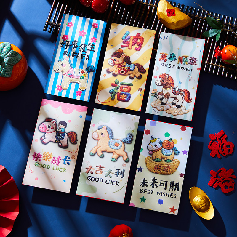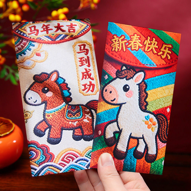 马年创意压岁刺绣红包
